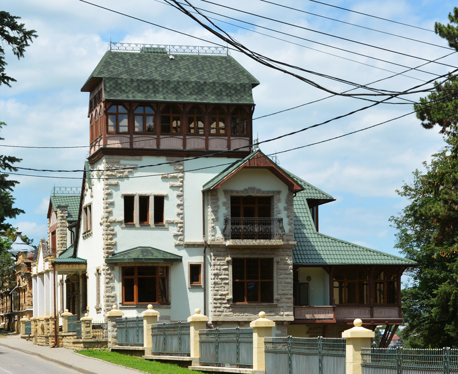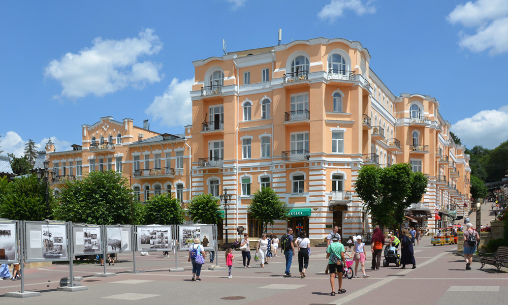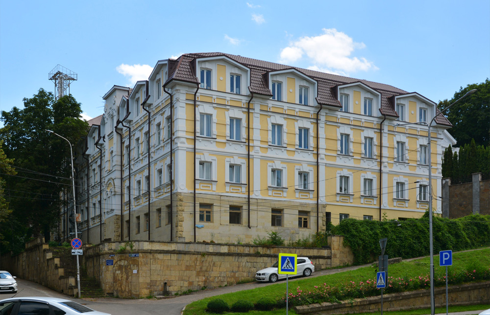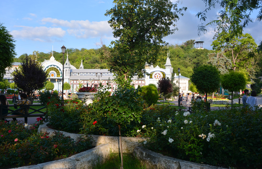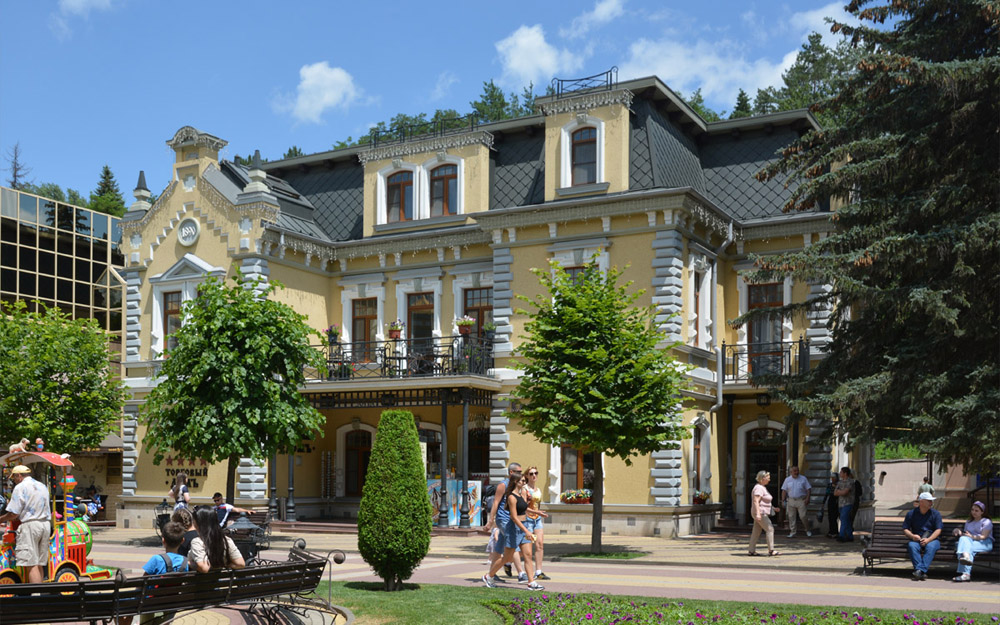 Экскурсия в Ессентуках началась с осмотра здания грязелечебницы, построенного в начале 20 в. в неоклассическом стиле.