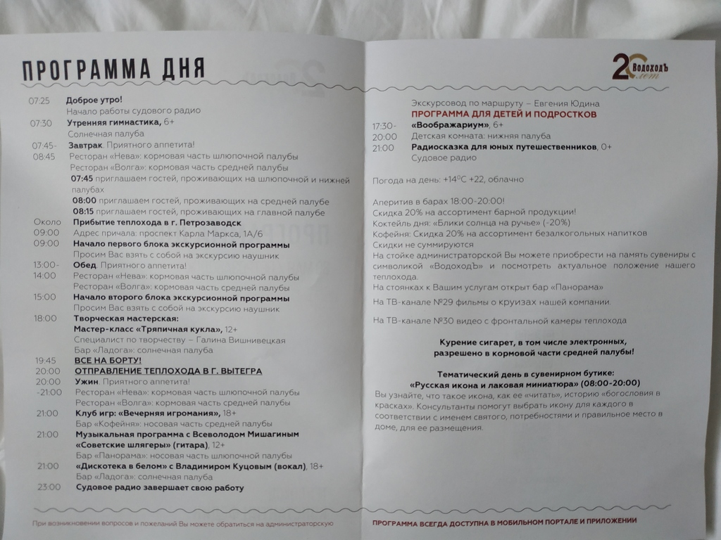Но с Фединым я пока не прощаюсь: у меня еще обед на борту за доп.плату и после обеда экскурсия на Кивач. Вещи пока будут у администрации.