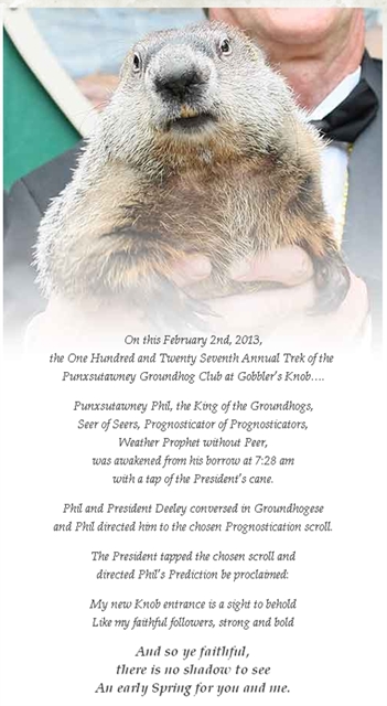 Что вам сказать.... самый знаменитый сурок на свете - Фил из Пенсильвании, прямо со своей Индюшачьей горки предсказал сегодня раннюю весну.