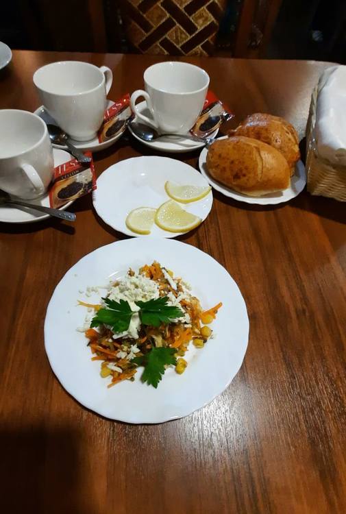 С питанием плоховато. Пришлось вчера в Самаре сбегать в магазин для заполнения холодильникаДочка села в Казани вечером. Выбрать меню на следующий день не дали. Поэтому выборное питание только на 3-й день. Вчера на ужин на десерт были пирожки с луком