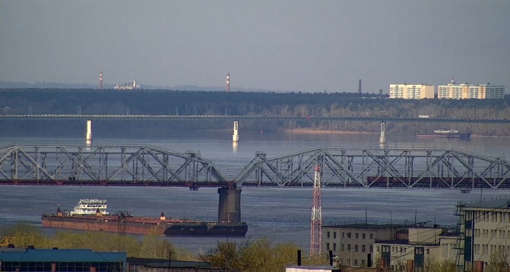 "Александр Грин" сверху прошел мимо паромной переправы Красное-на-Волге - Красные Пожни. Паром и камера со стороны Красное-на-Волге.