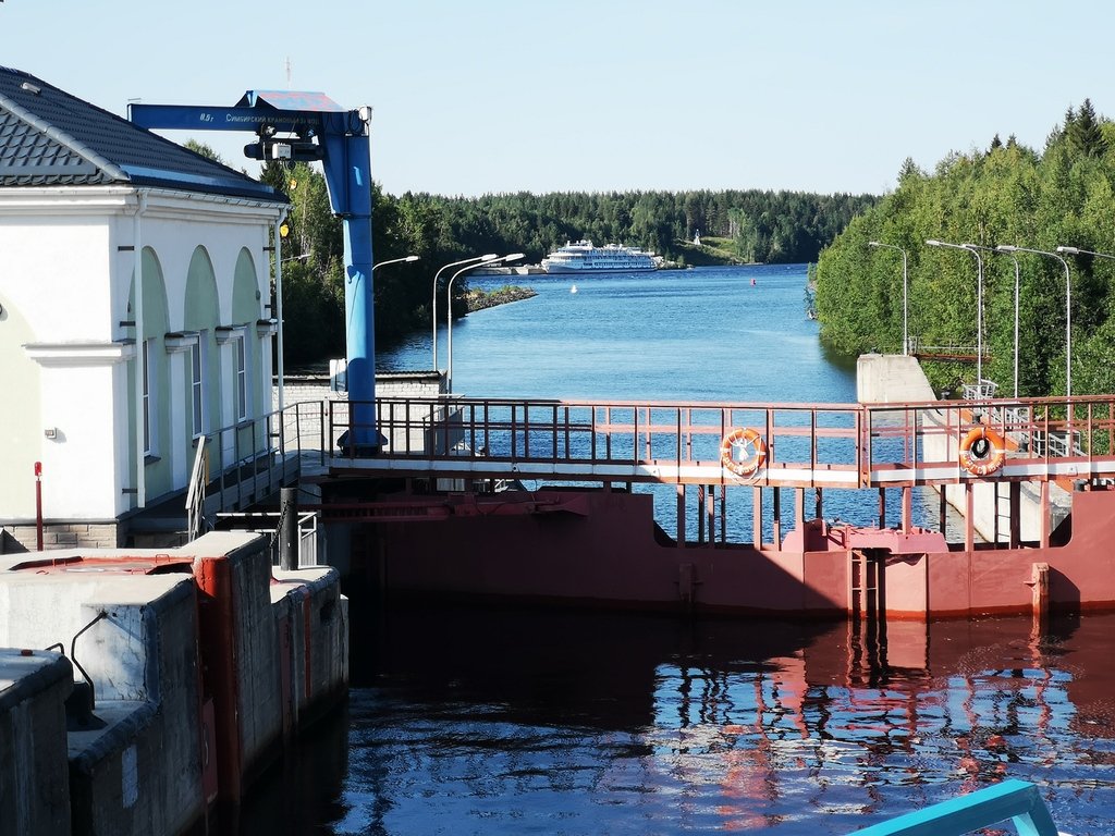 АС Пушкин. Мы в 6 шлюзе, подождали у стенки пока прошлюзуются встречные СТ-660 и Волго-Дон-5060.