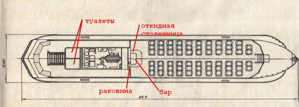 Устроена примерно вот так (это Ракета-185 у которой сохранился оригинальный салон):