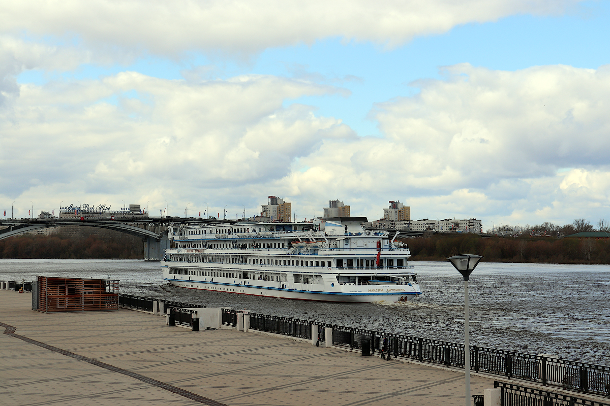 Пока далеко не уехали, несколько фото теплохода "Максим Литвинов" (компания "Донинтурфлот") в Нижнем Новгороде сегодняшним утром: