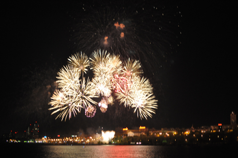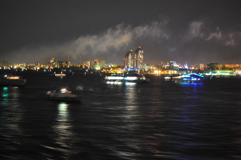 Не, у меня больше получается. Фотоаппарат ставит время снимка. 1ый залп был ровно в 22:00, последний мой снимок салюта в 22:22. Потом он еще продолжался 2-3 минуты, но я не снимал. Слишком далеко мы ушли. Так что, или интервал другой, или залпов больше было. И потом, последние фейерверки (самые красивые) были уже без звуковой канонады.