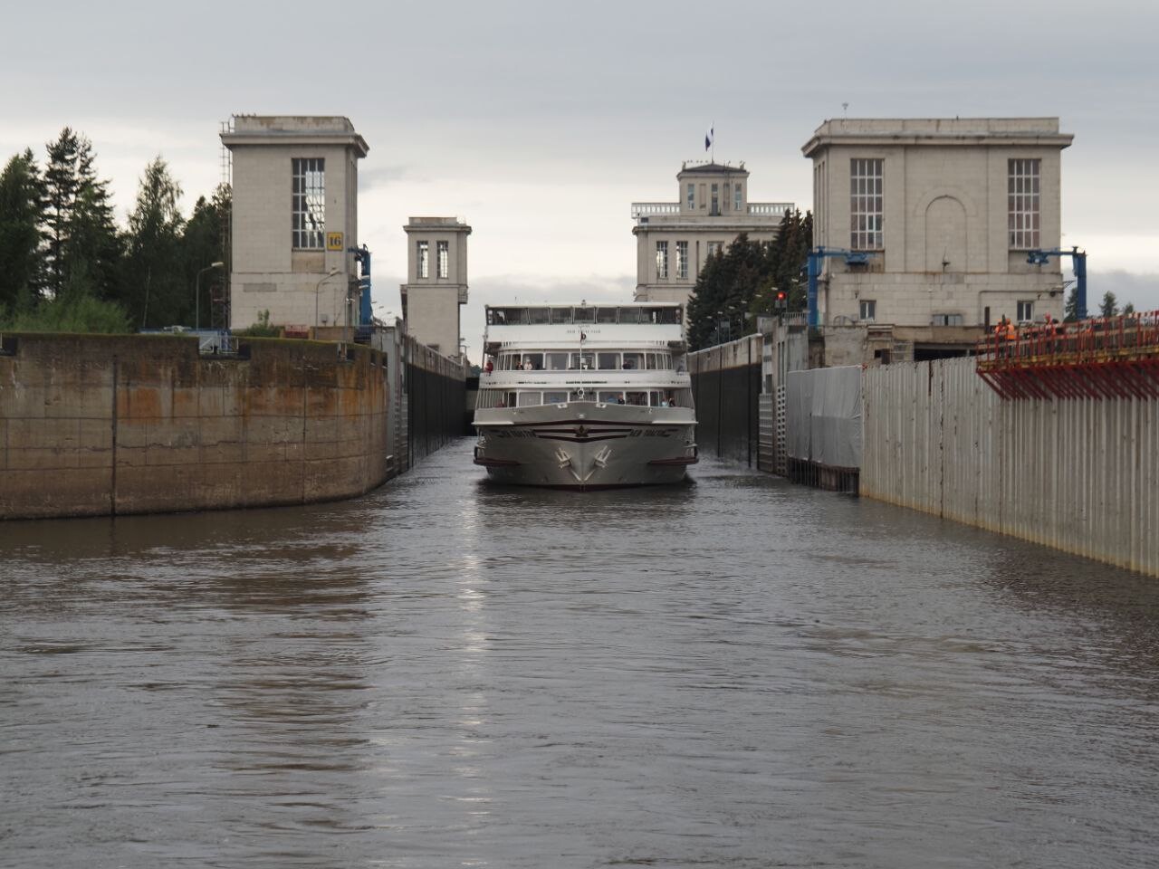 В Городце шлюзовались вместе с теплоходом «Лев Толстой».В какой-то момент полил сильный дождик, который, однако, быстро кончился.