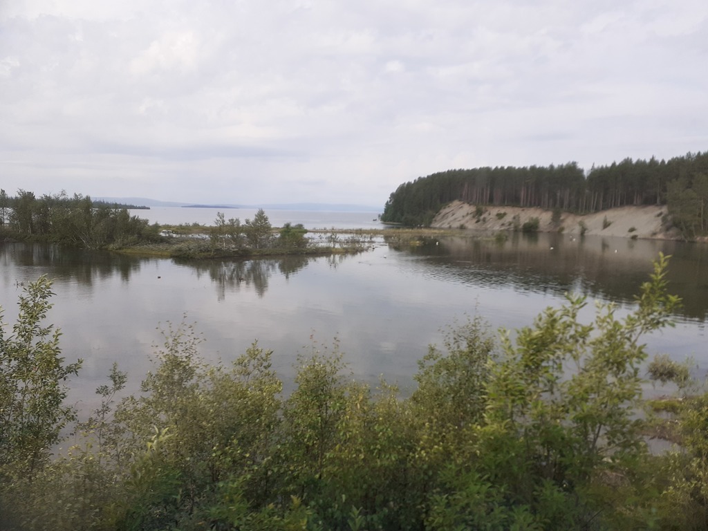 Словом, из окна поезда виды очень похожи на те, которыми мы любуемся с борта теплохода - разве что преобладает не вода, а лес. И при виде особо крупных озёр может показаться, что ты едешь по берегу Беломорканала (хотя это и не так...).