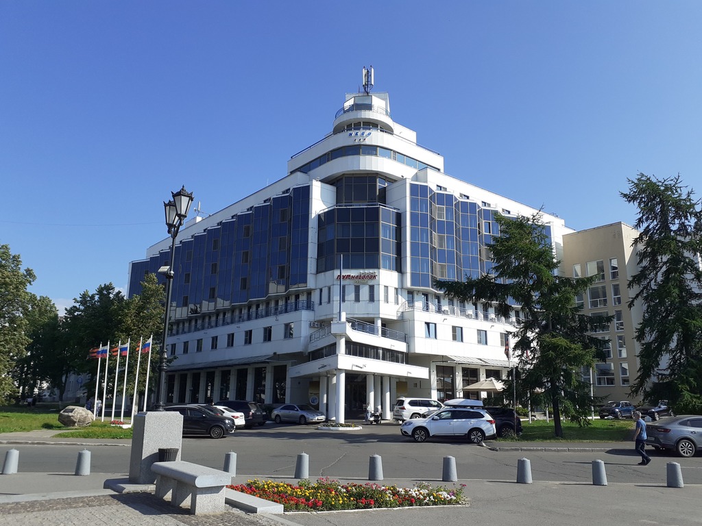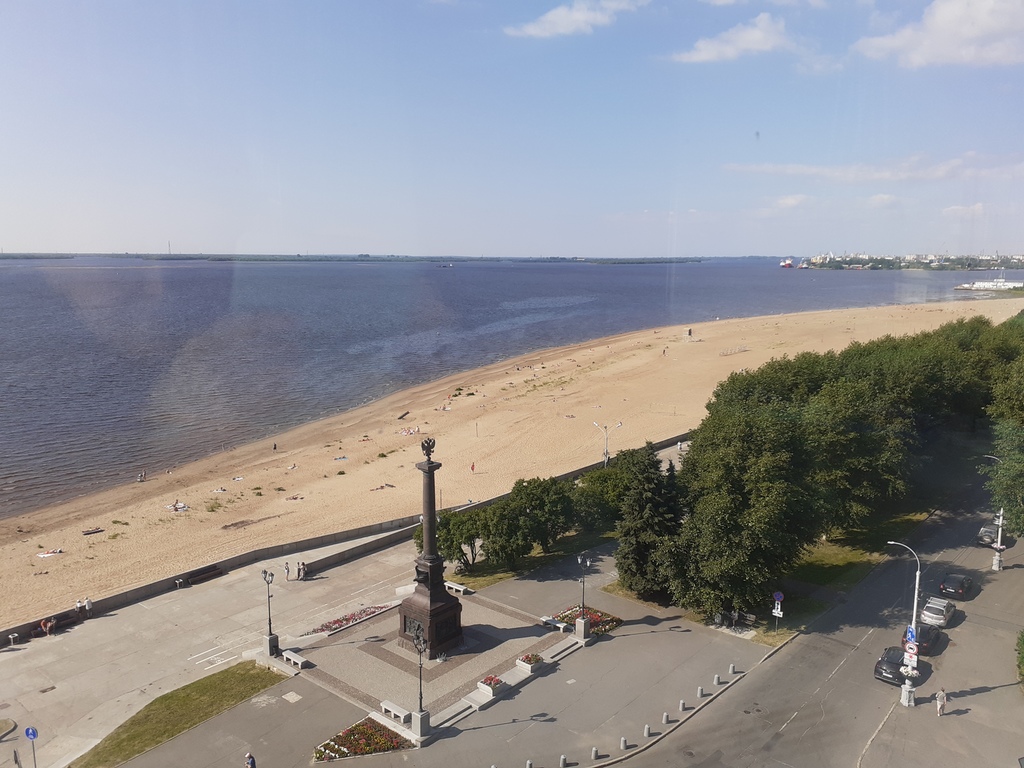 Заселились в "Пур-Наволок". Сидим сейчас в ресторане на 8 этаже, созерцаем невероятный по красоте вид на Двину.