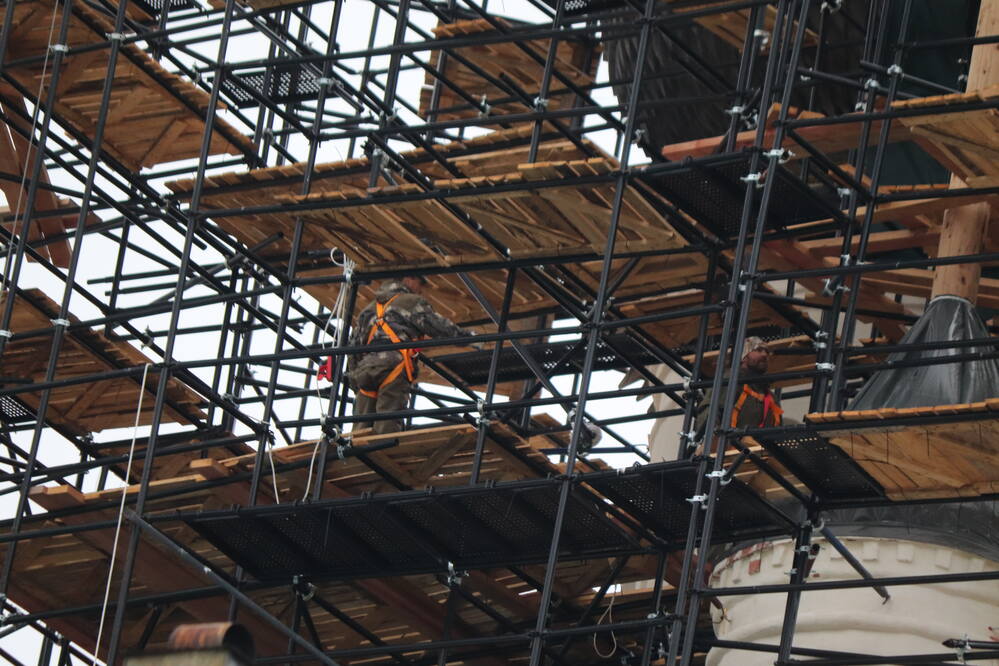 Многострадальные купола. Чего ж ждать, если там пяток рабочих. Лето прошло без изменений.