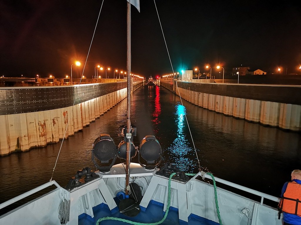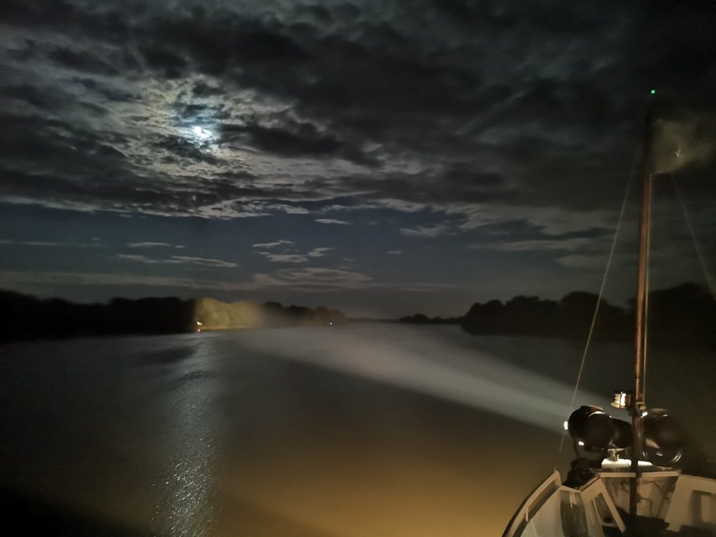 Добрый вечер. Возвращаемся. Уже Мособласть. Прошли Алпатьево (бывший Алапатьевск)). В этом месте у меня сегодня началось утро. Стучали колесами и гудели поезда. Сейчас этого ничего не слышно, поскольку на корме грохочет дискотека. Пошел я пожалуй спать. Всем спокойной ночи. И привет с ОКИ!