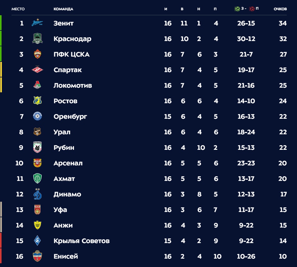 Матч Оренбург-Крылья Советов перенесен поэтому у них в таблице на игру меньше.