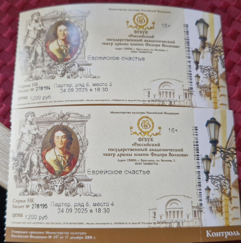 Вчера в Ярославле были в театре Волкова на спектакле " Еврейское счастье" Организация на 5+!
