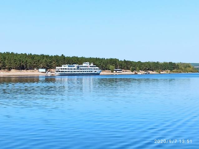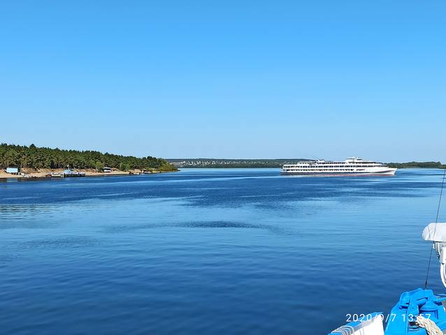 Стоим в очереди, на рейде, ждем, когда Герцен(?) освободит нам причал, похоже, он туристов на тх загнать не может