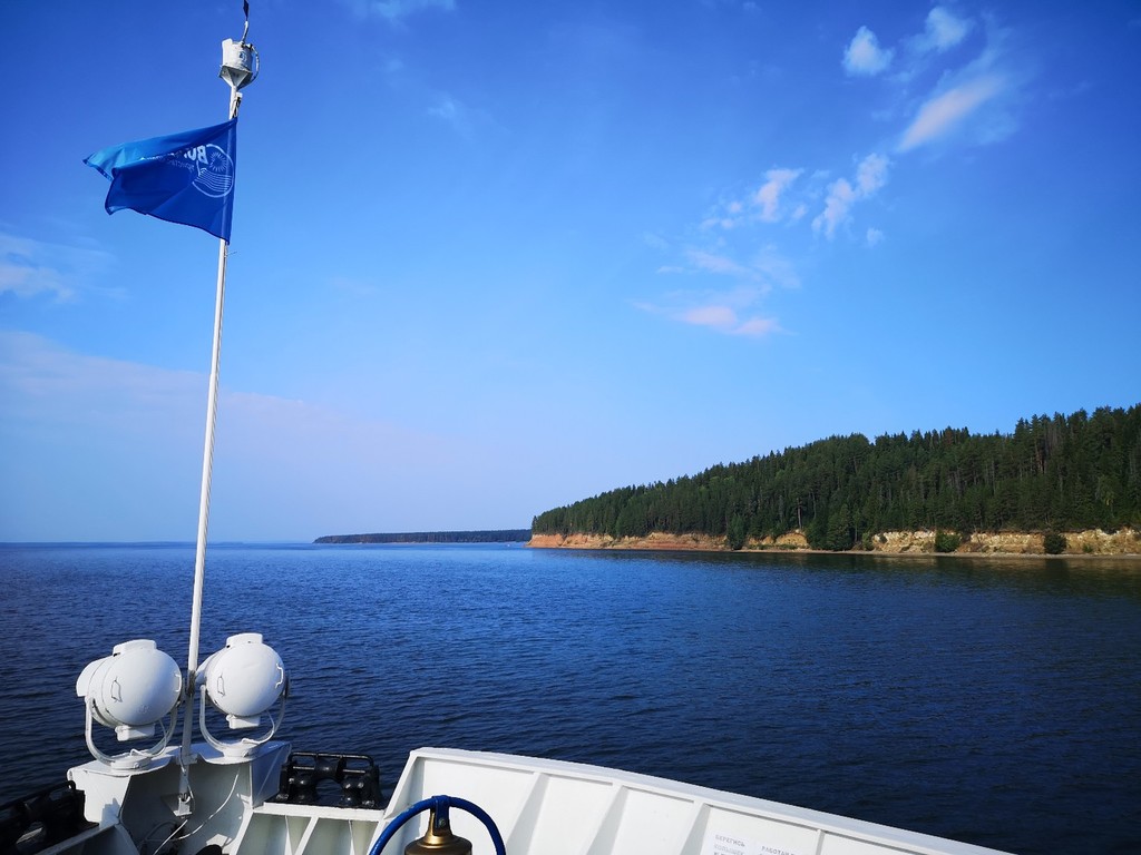 Пушкарев. За ночь мы добежали от Перми до Чайковского, судя по карте, скоро он появится на горизонте. А пока любуемся обрывистыми берегами Камы.