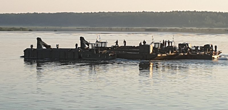 Полагаю военные понтонеры работают. Они часто между Яриком и Рыбинском тренируются. Муромская бригада. У них девиз красивый "Понтонеры - спецназ инженерных войск". Сын там присягу принимал.