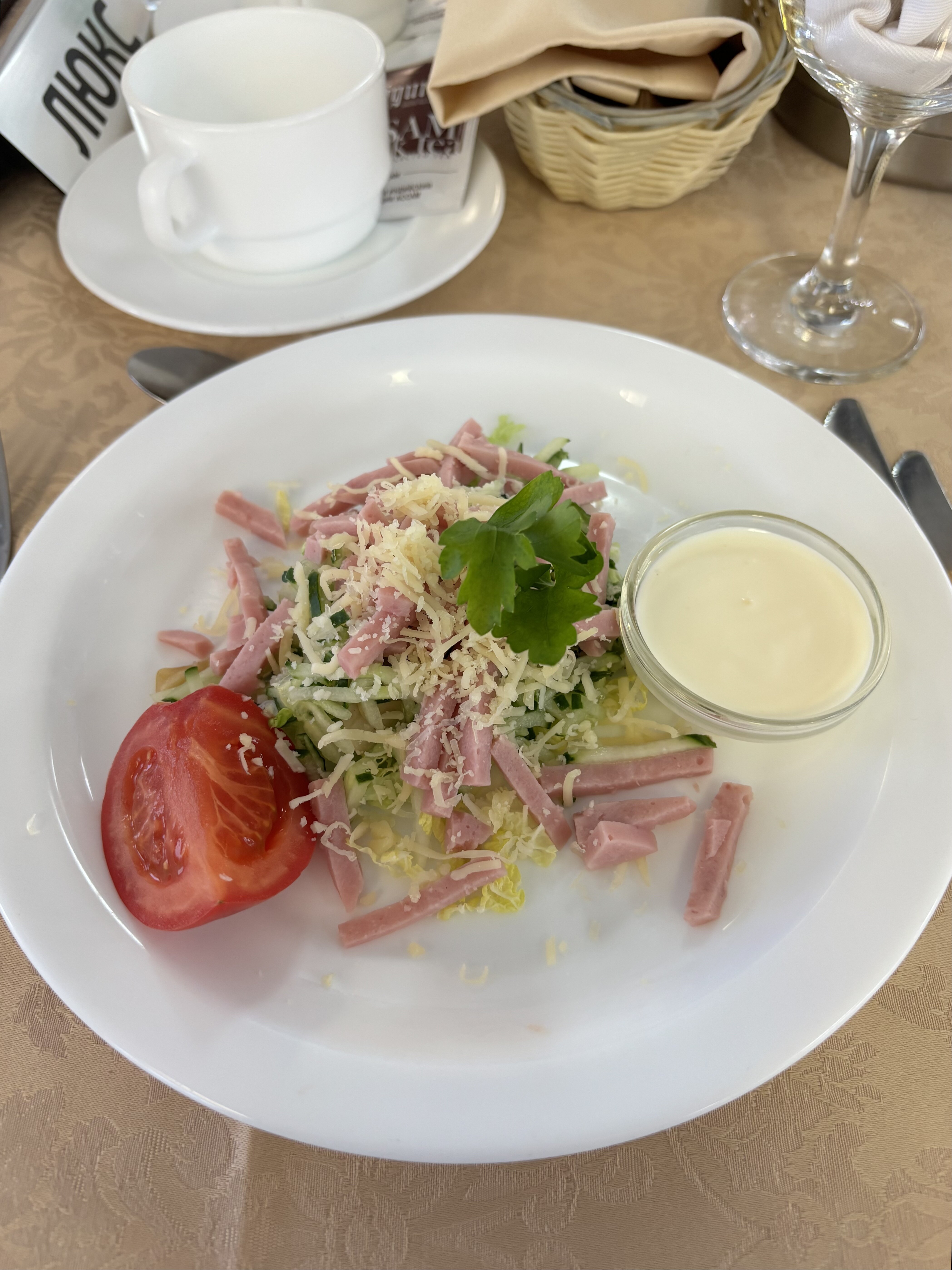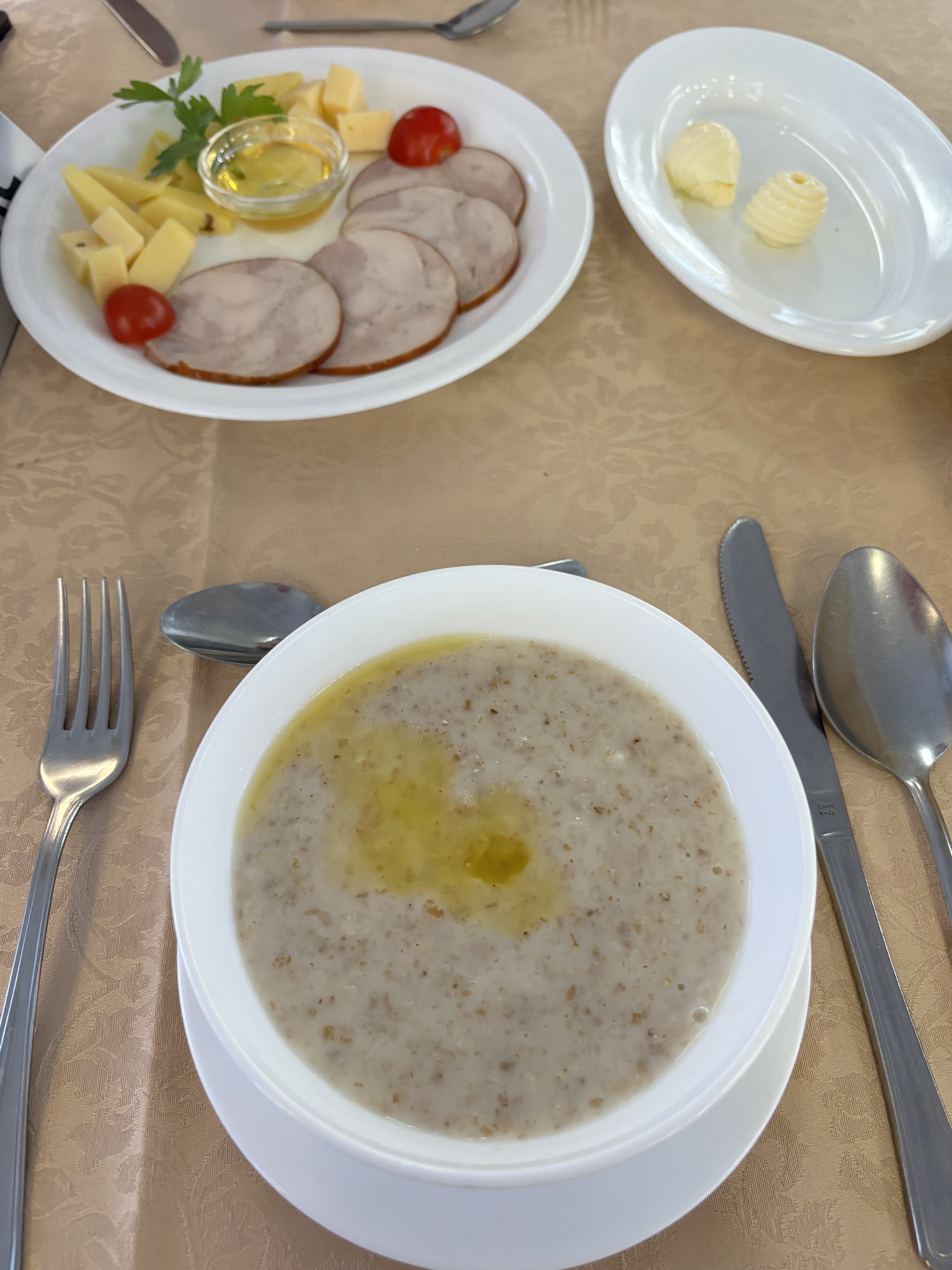 В 8 утра мы уже прибывали в Мариинский Посад, поэтому завтрак был супер ранний (для меня) - в 7 часов. Мы подходили традиционно в 7:20 (из-за меня, конечно). Ну к 7 я никак не могла собраться))
