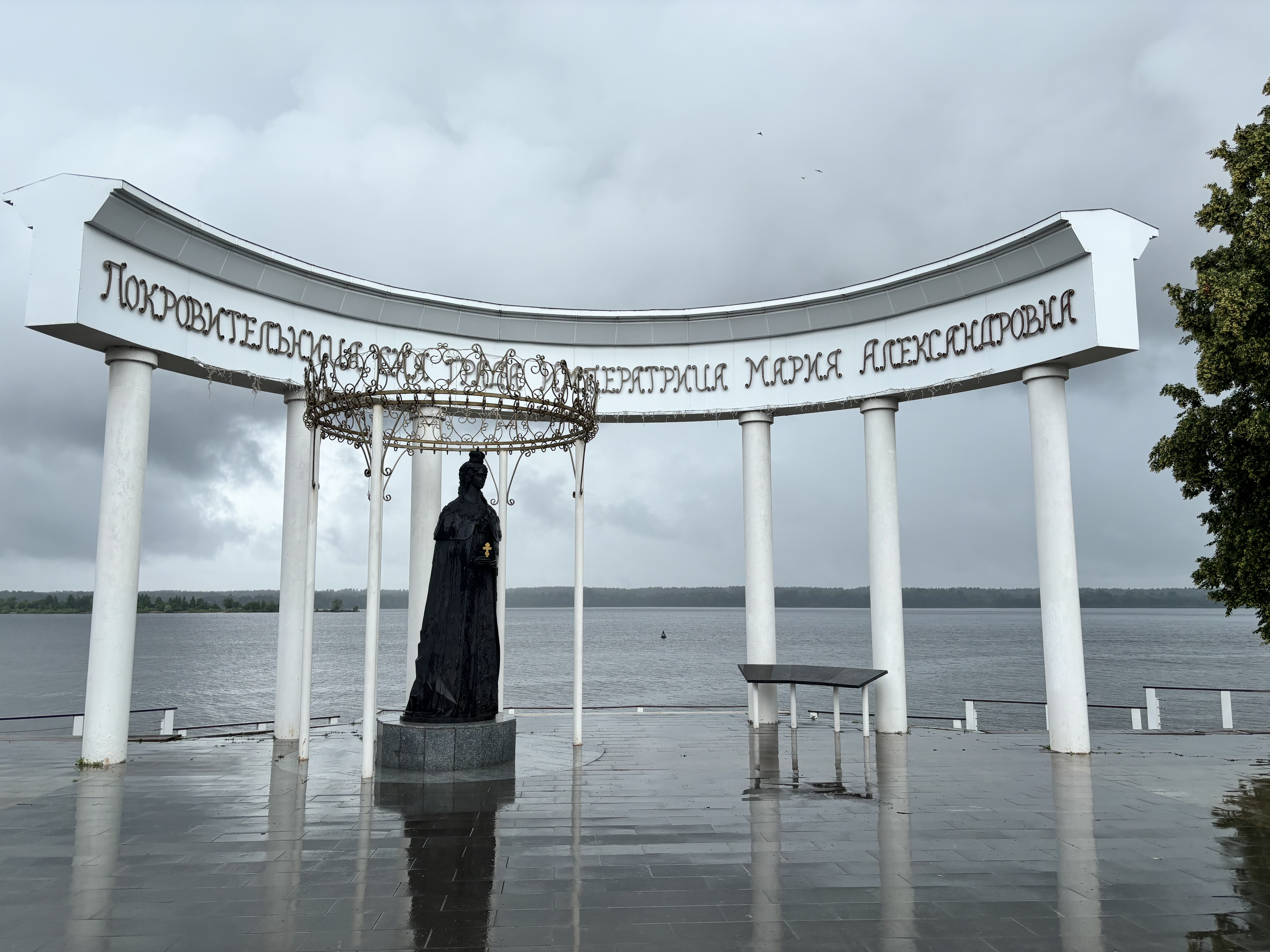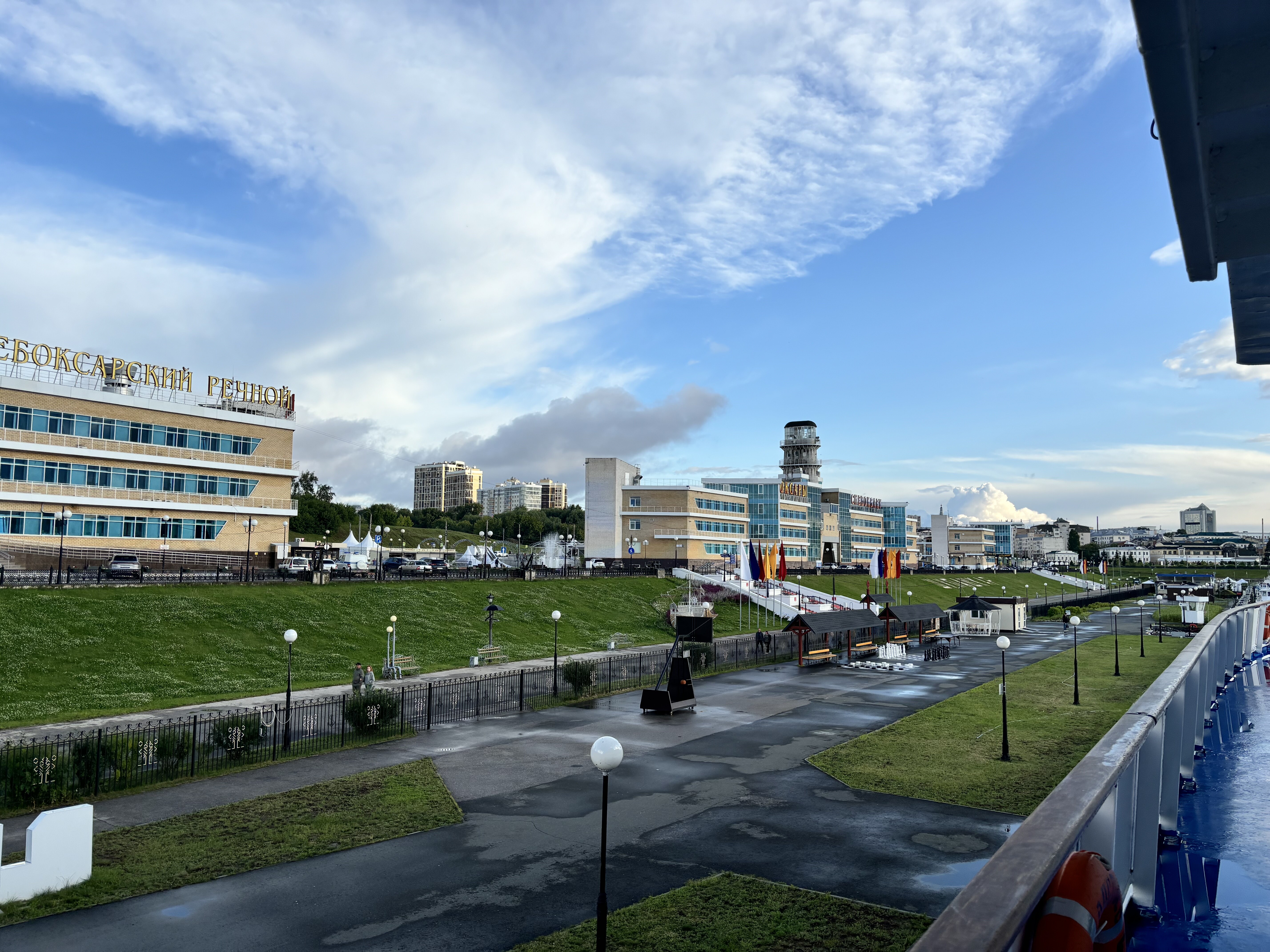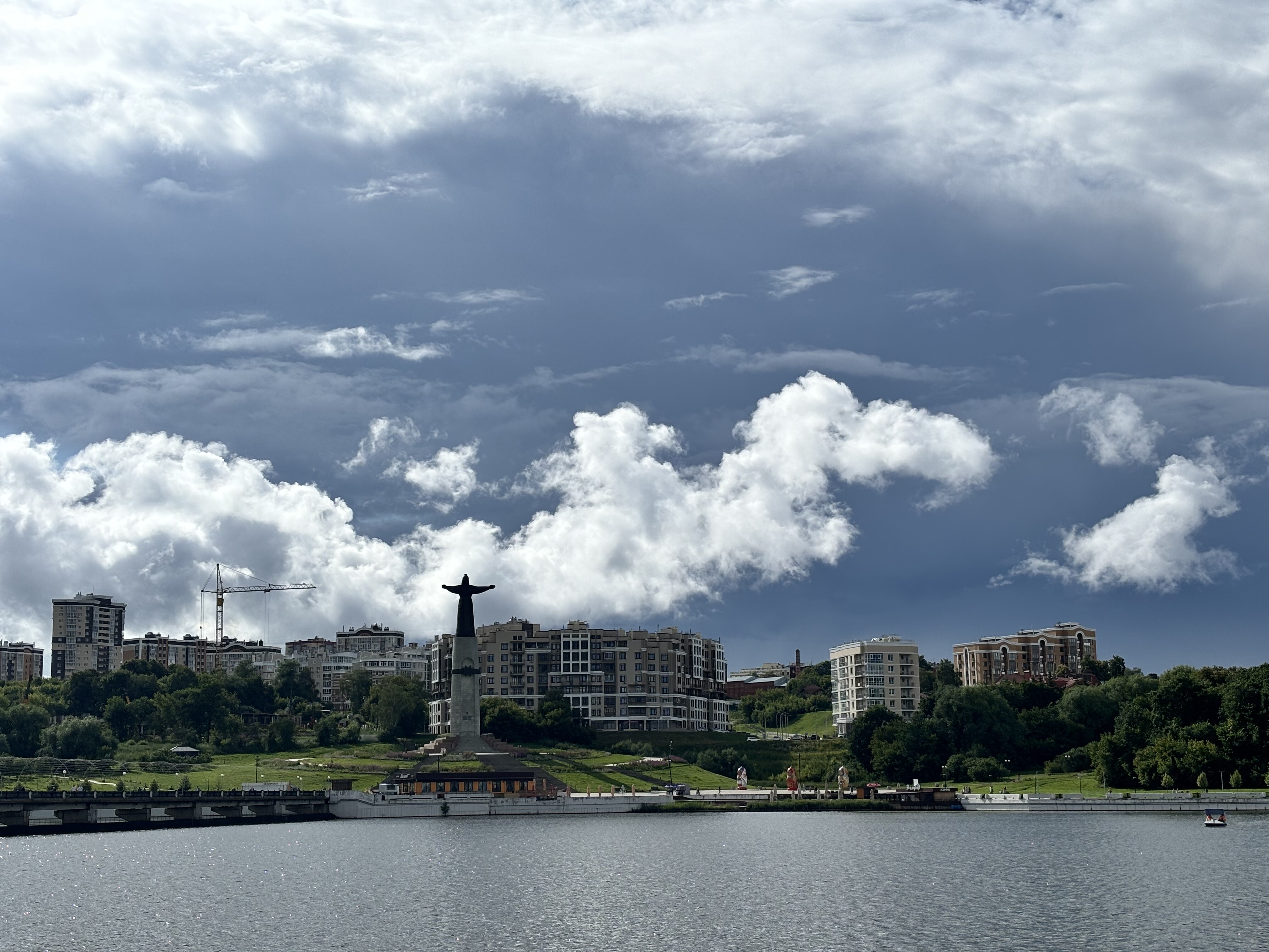 В Чебоксарах мы тоже не брали экскурсию, идем гулять сами. Погода опять не погода, а непонятно что. Ориентируясь на прогноз ближайших часов, решаем часок переждать и дождаться выхода солнышка.