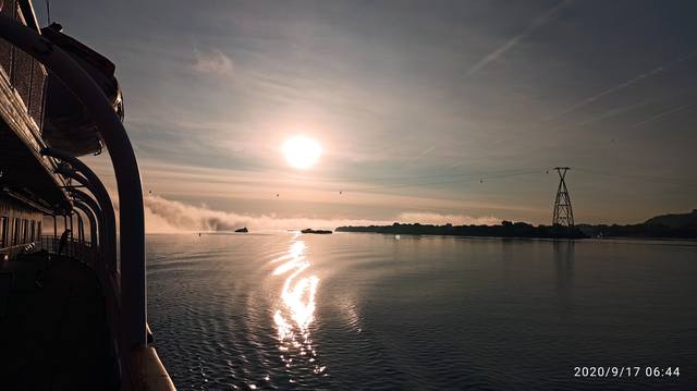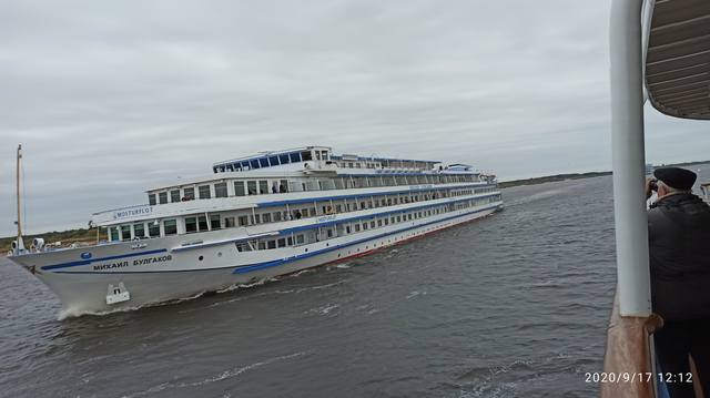 "Михаил Булгаков" в 11-35 вышел из камеры идет вниз, навстречу с "И.А.Крыловым" и "Н.А.Некрасовым". На 12-07 теплоходы в поле зрения камеры Булгакова.