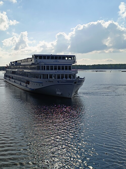 Сейчас мимо промчался Достоевский, а телефон в ноль разряженный на зарядке в каюте.. так жаль .. сфотографировала, только помахать успела, и погудели теплоходы славно))