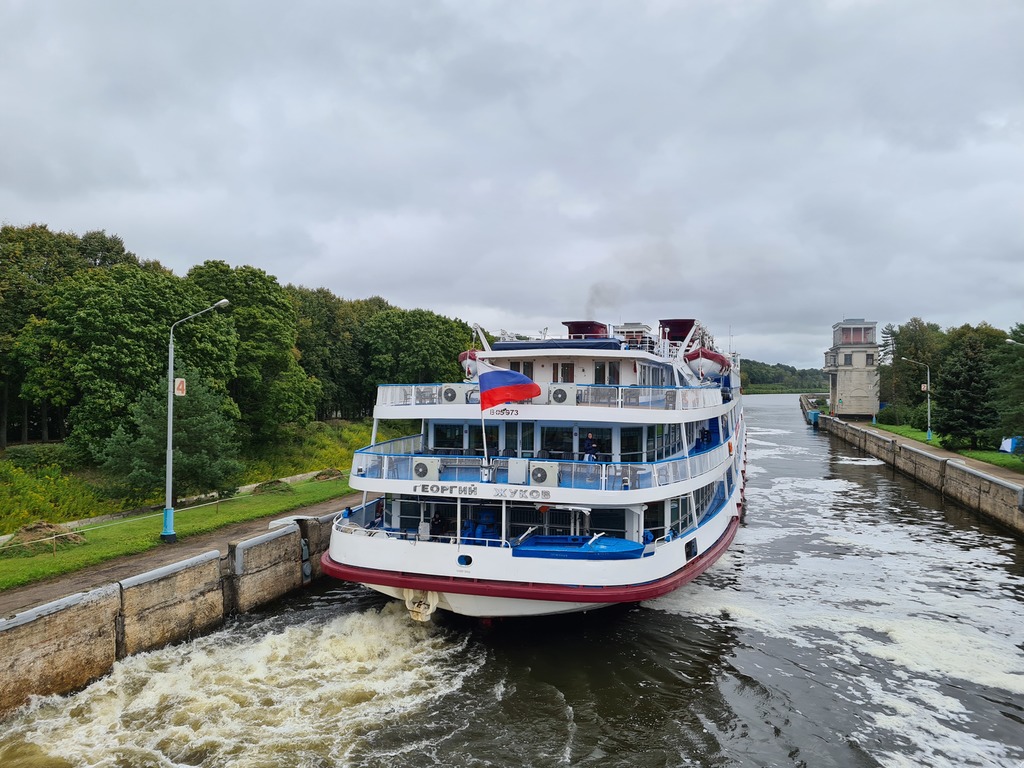 Мы прошли мимо города Октябрьска, и только что прошли под Сызранскому жд-мосту, по которому двигался большой грузовой состав, примерно из 70-80? цистерн, наверное полных.