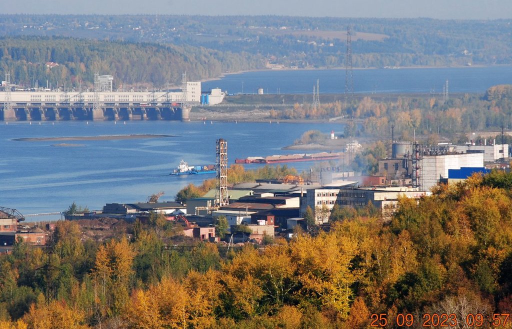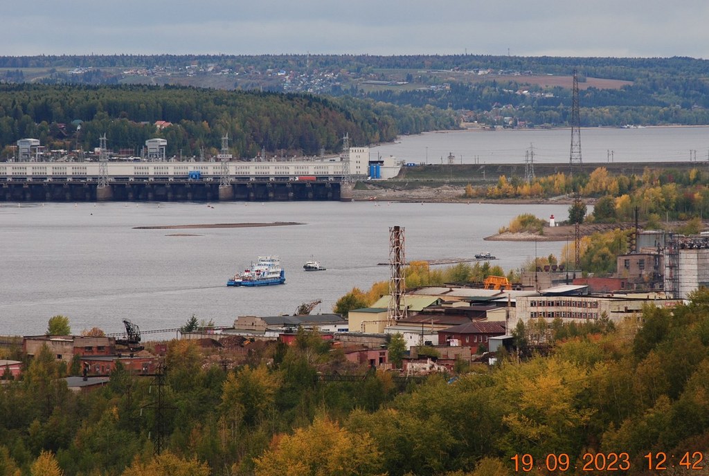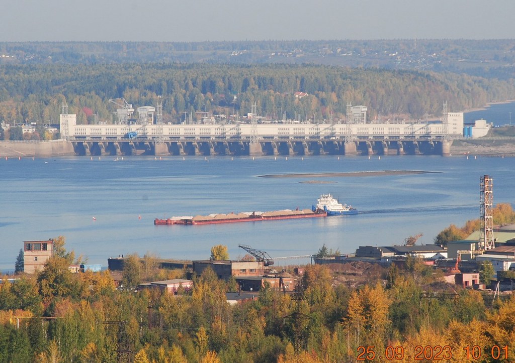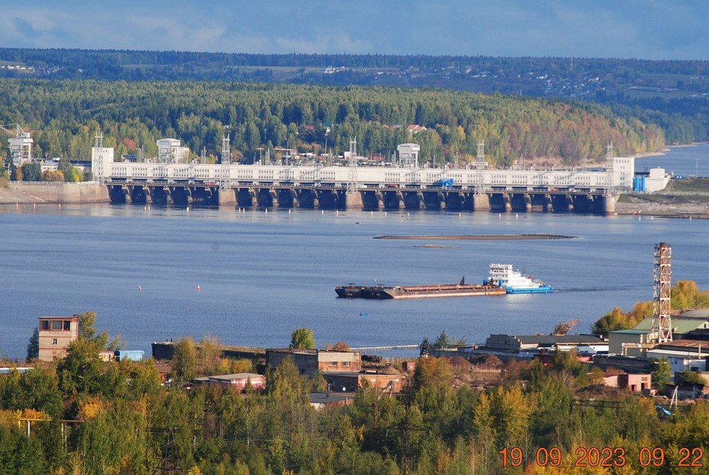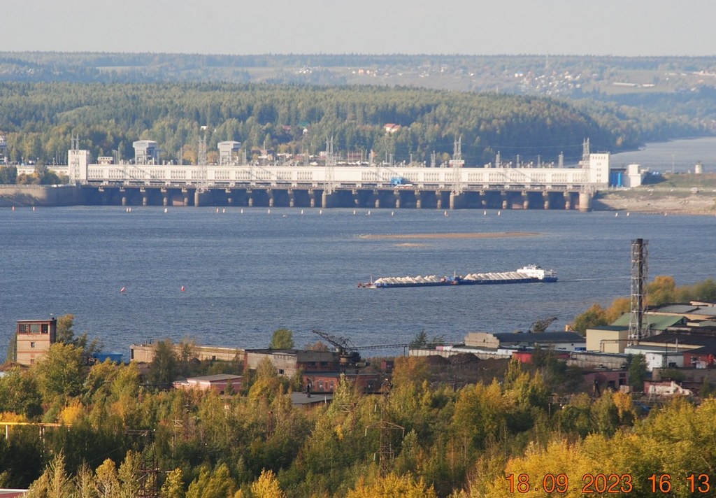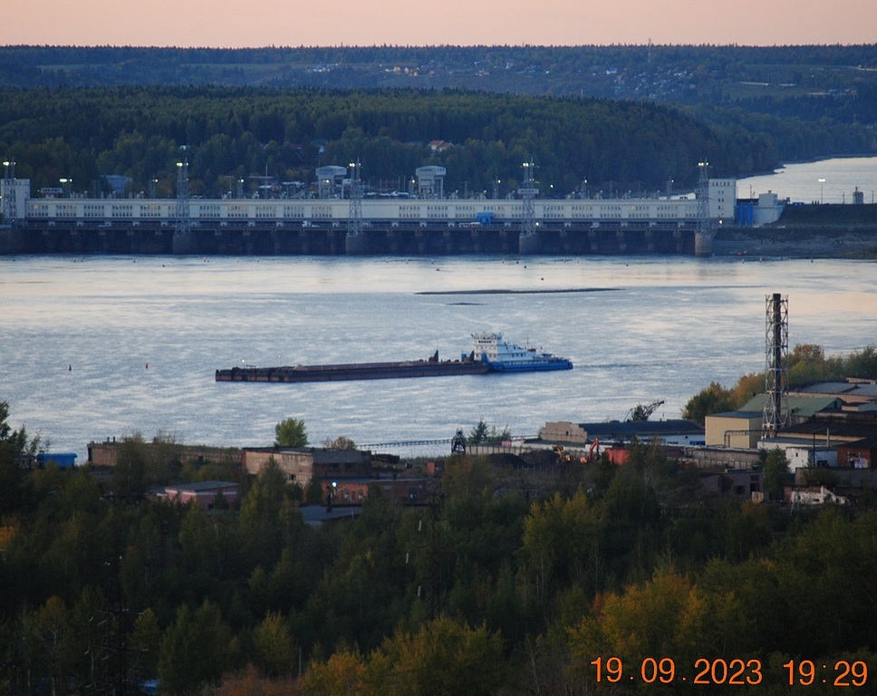 Днём, приведя 2 баржи из шлюза и оставив их на рейде в Заостровке, толкач "Механик Ивлев" (ОТ-2415) устремляется вверх по реке в сторону шлюза, за оставшимися двумя баржами, которые стоят на Камском водохранилище у мыса Стрелка.
