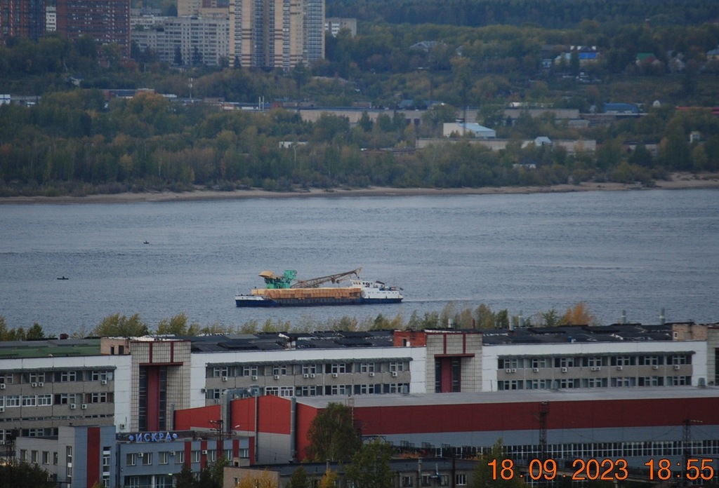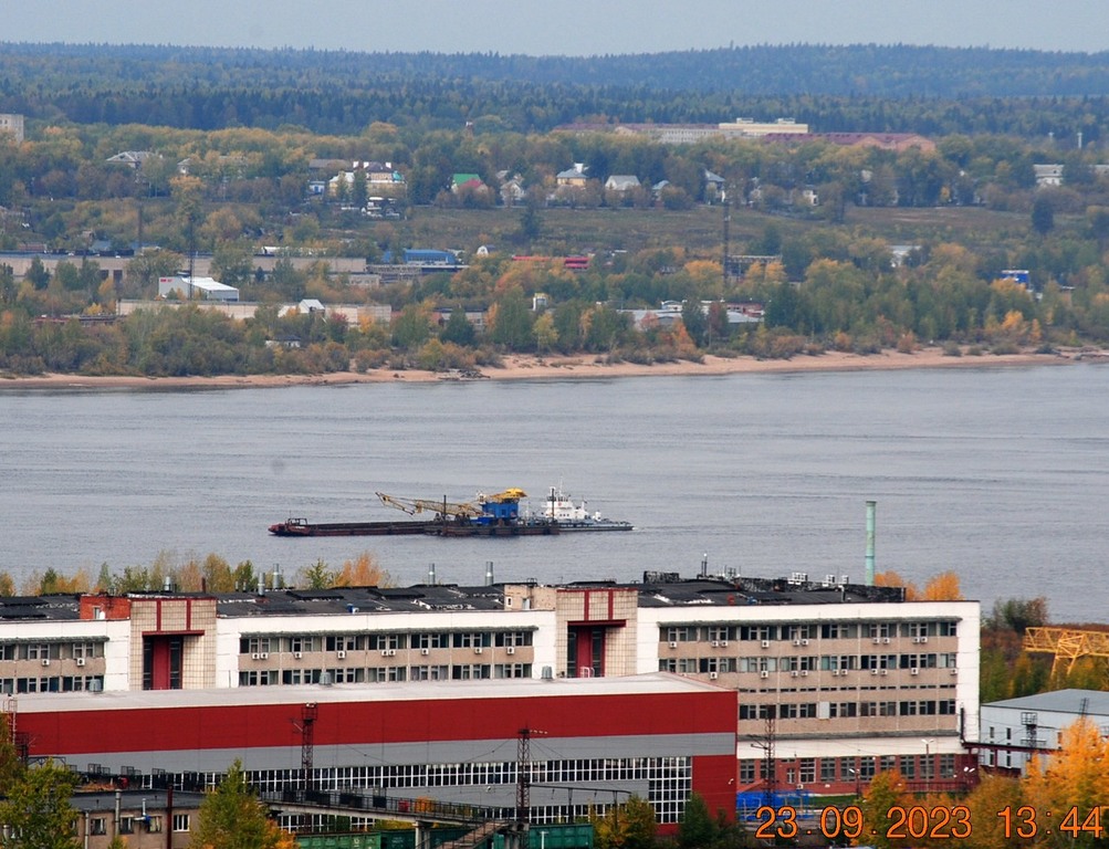23 сентября 2023 г - вниз из шлюза идёт РТ-330 под боком ведёт плавкран К-3204