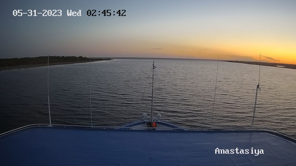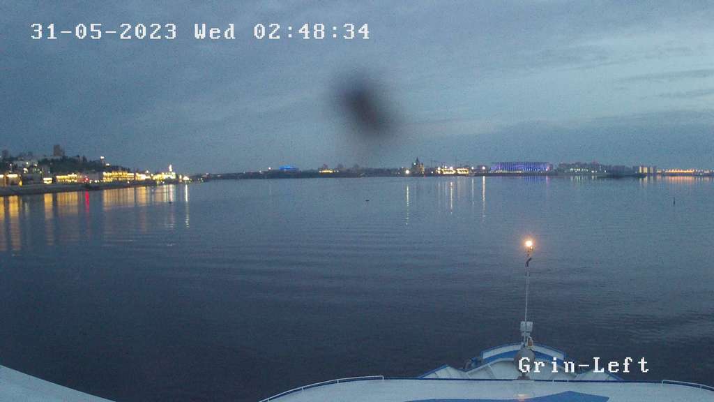 Теплоход "Сергей Образцов" ушел не вверх, как мне показалось, а вниз, стоит в Тетюшах. Оборот он там делал, перед подходом к причалу, поэтому и поворот был такой, с креном небольшим. А я решил, что повернул от Болгар направо, вверх.
