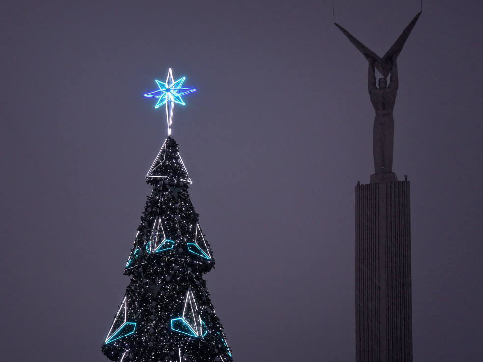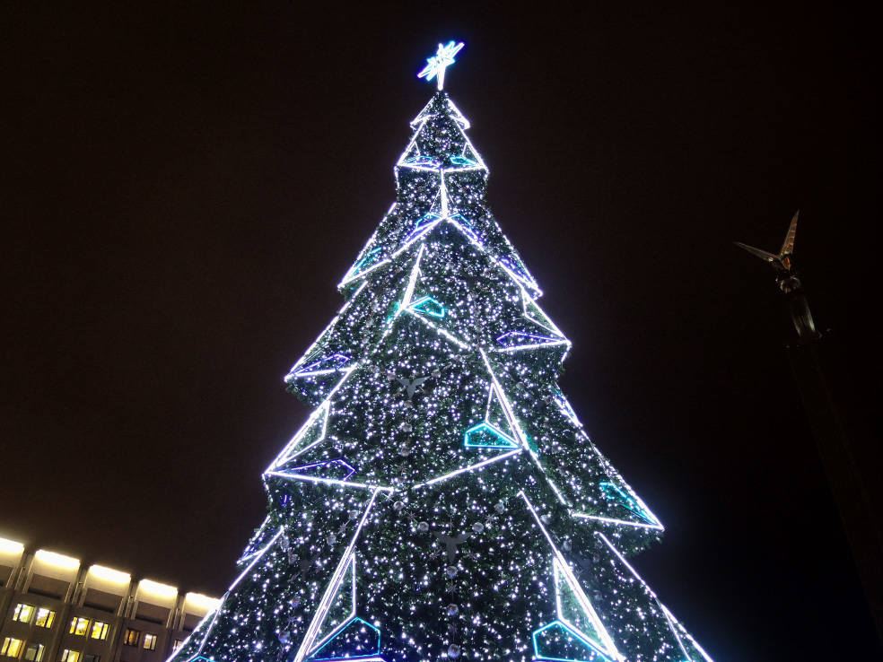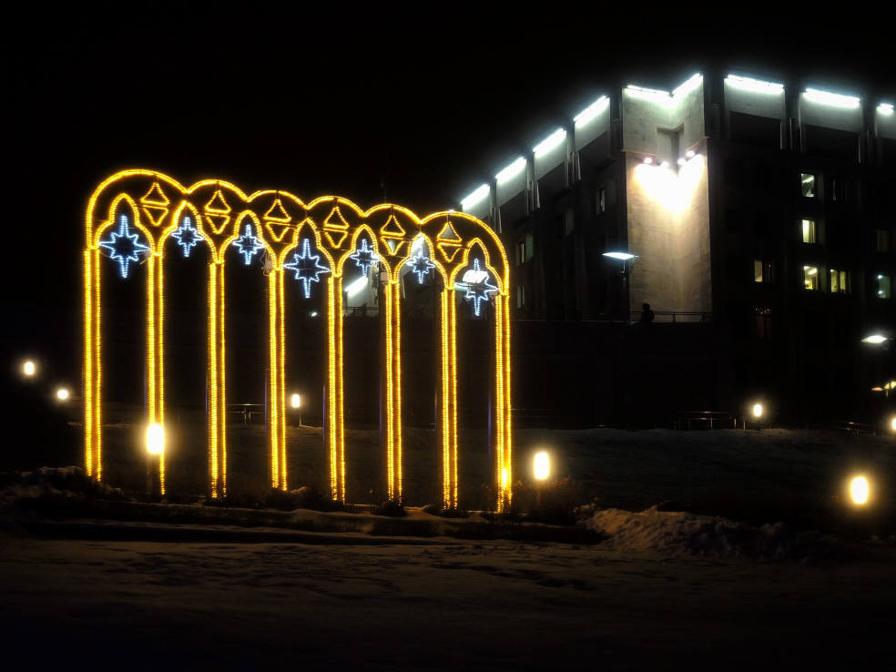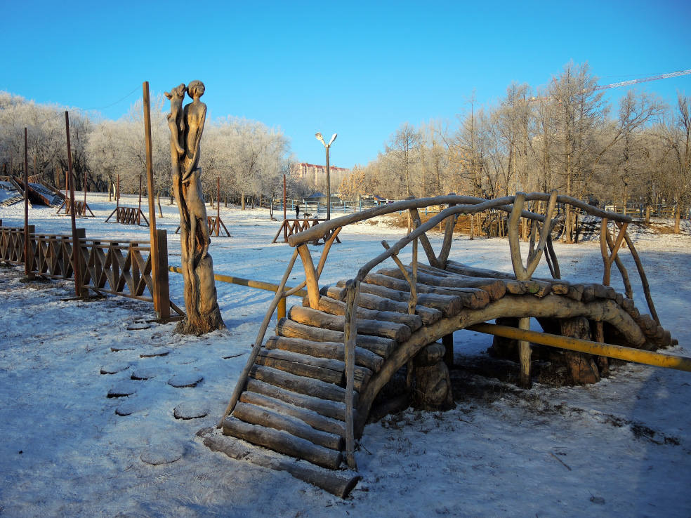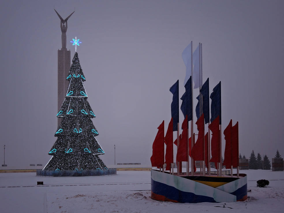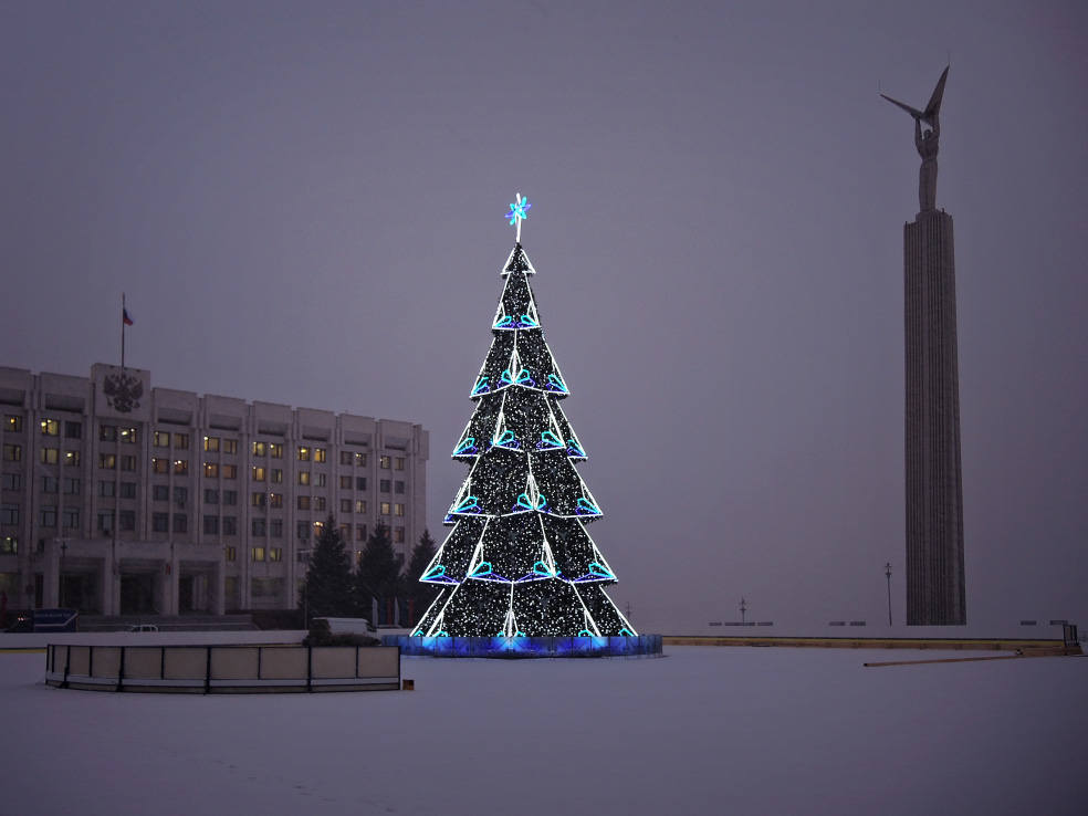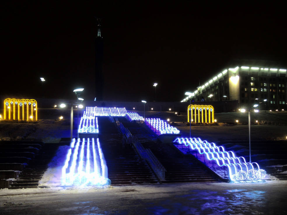 Новинка этого года. В сети пишут, что это самый большой фонтан в Самаре. Приводятся какие-то страшные цифры по весу, длине и стоимости. Монтировали его долго. И вроде бы до сих пор не смонтировали полностью, какие-то части обещают подключить перед самым Новым годом. Плюс когда я доехал посмотреть на него, была жуткая погода. Периодически шёл мокрый снег, который залеплял объектив. В общем, получилось кое-как. Но уже как есть. Моё новогоднее вдохновение по Самаре закончилось на этом самом склоне в тот самый день.