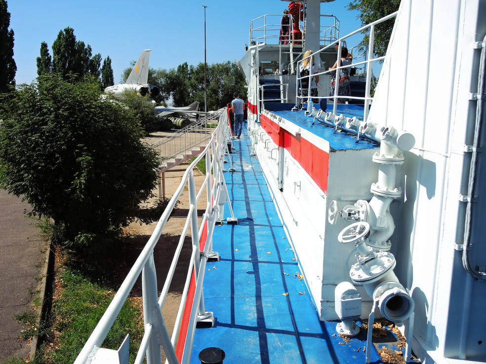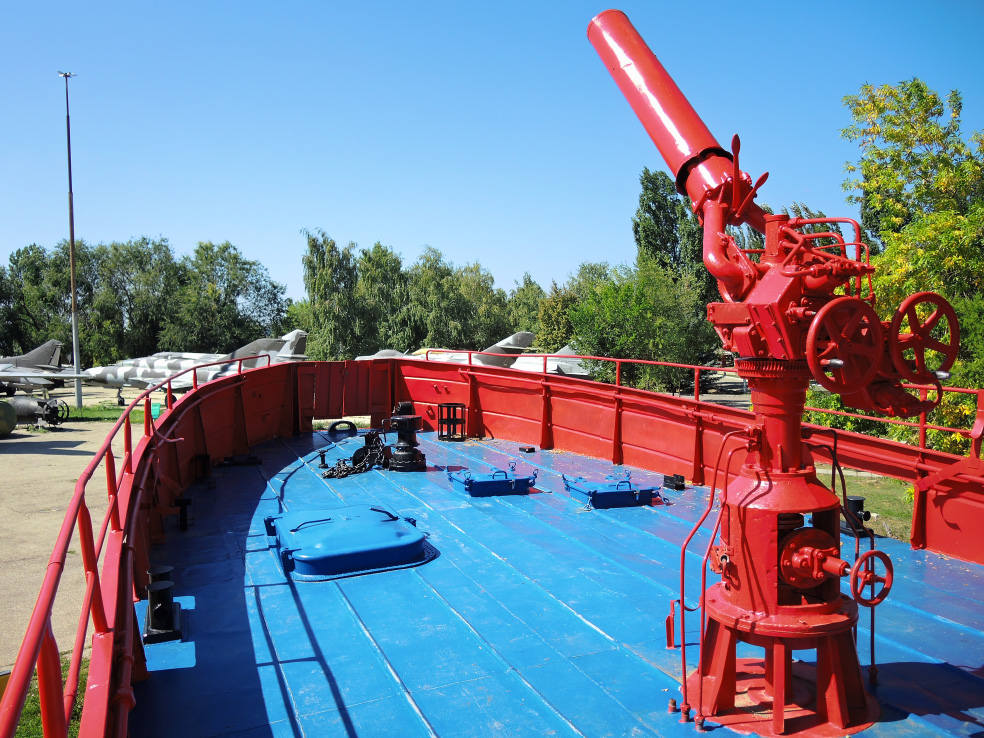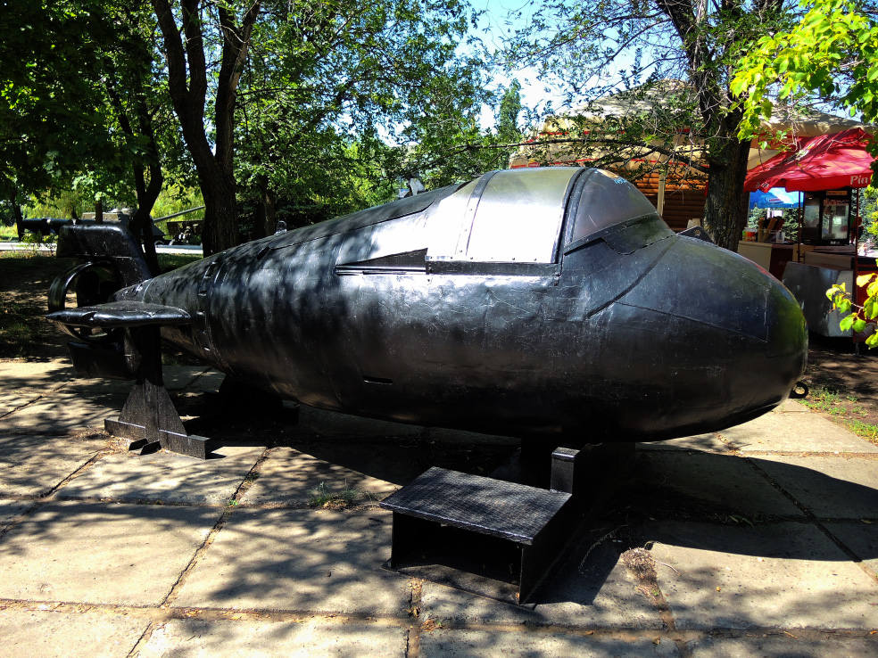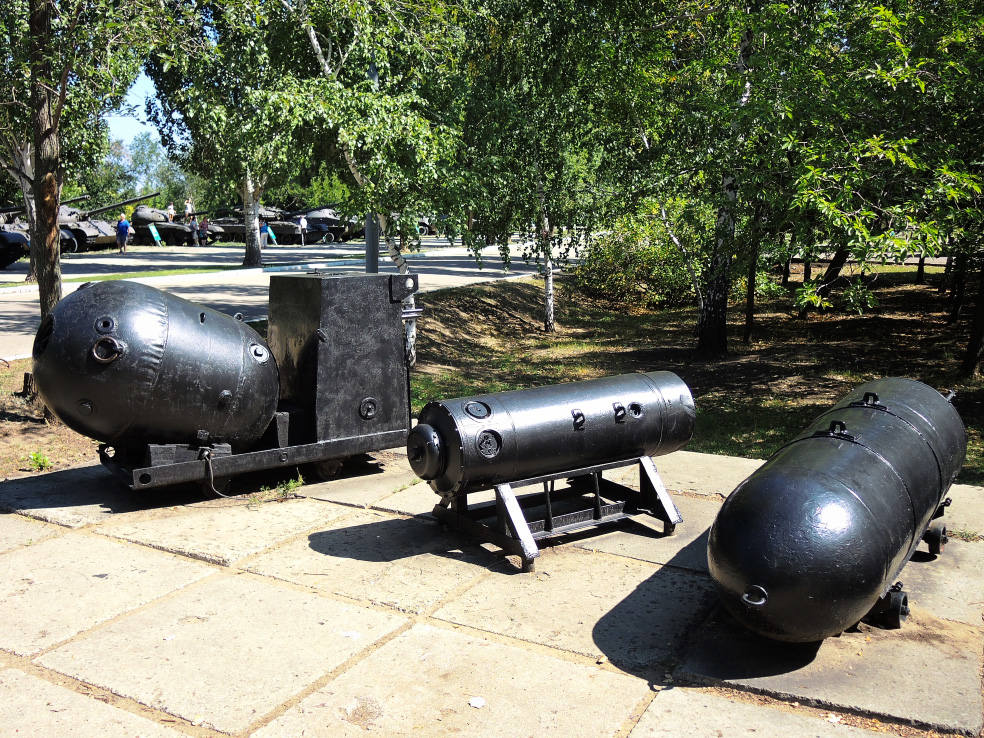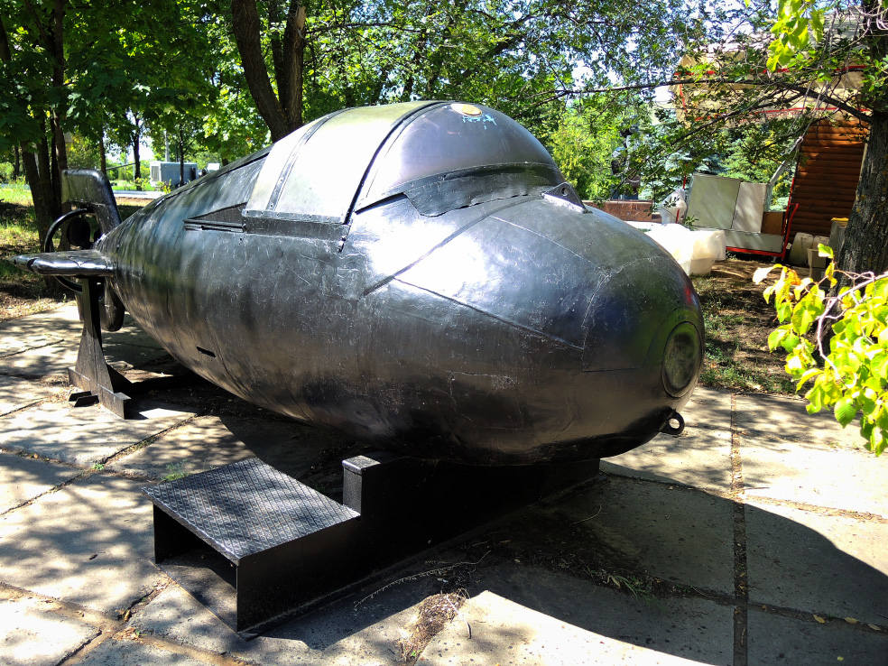 На следующей площадке представлены морские мины и торпеды, а также сверхмалая подводная лодка.