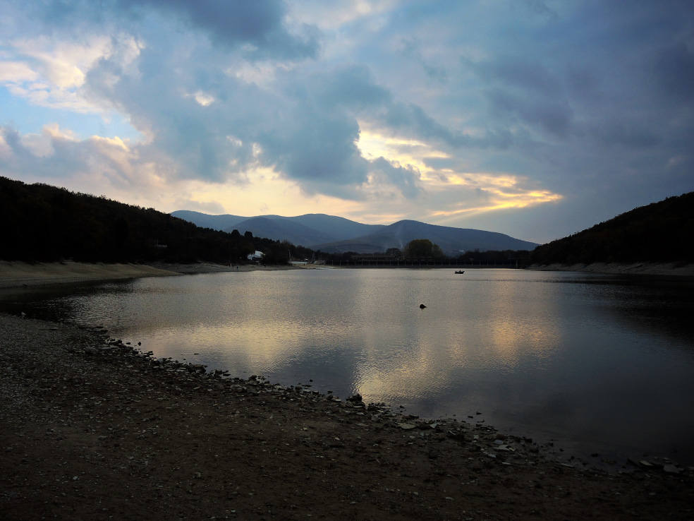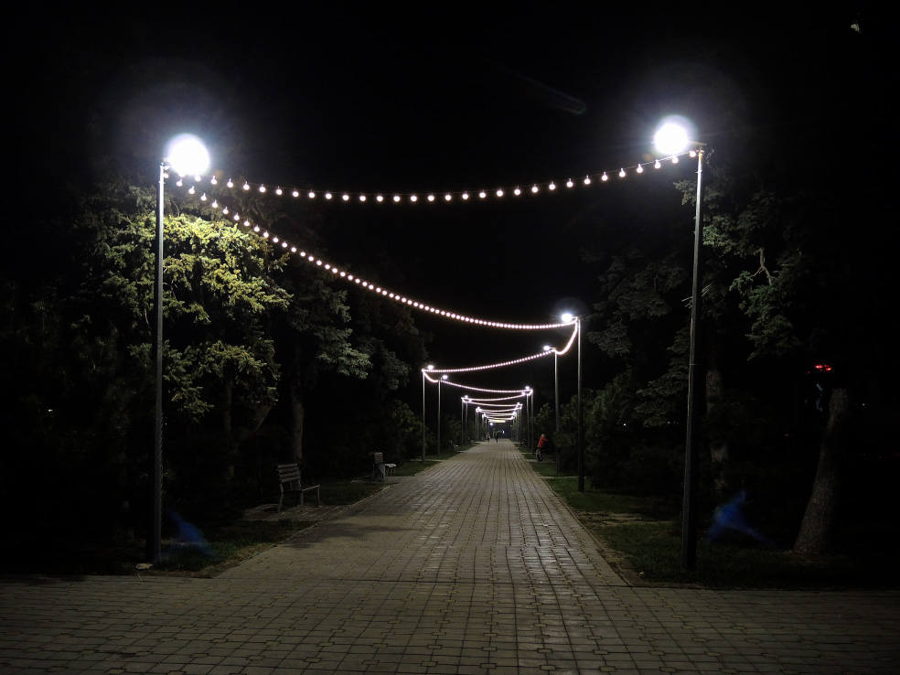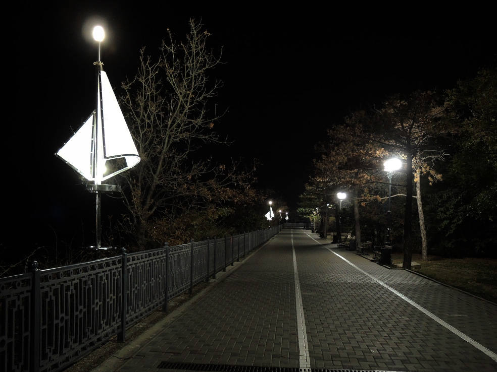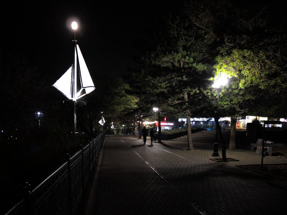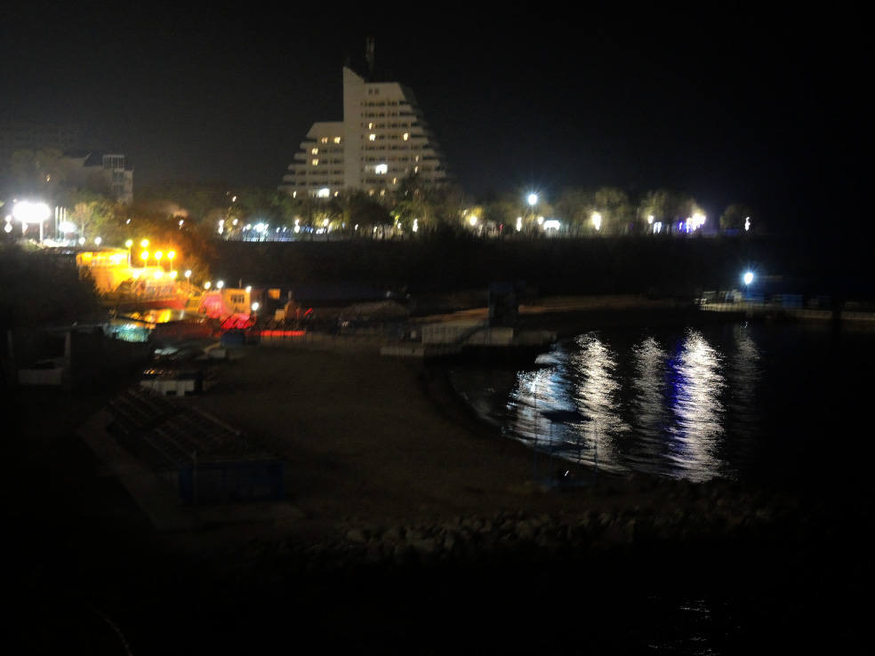 Кусочек красивой жизни внизу - бассейн комплекса "Золотая бухта". Никого нет, а подсветка включена. По склону тут лазил ёжик. Сфотографировать его не получилось, но я с интересом понаблюдал за ним какое-то время.