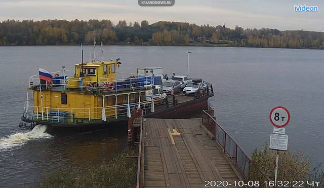 Паром СП-72 закончил погрузку, пошел на правый берег в Красные Пожни.