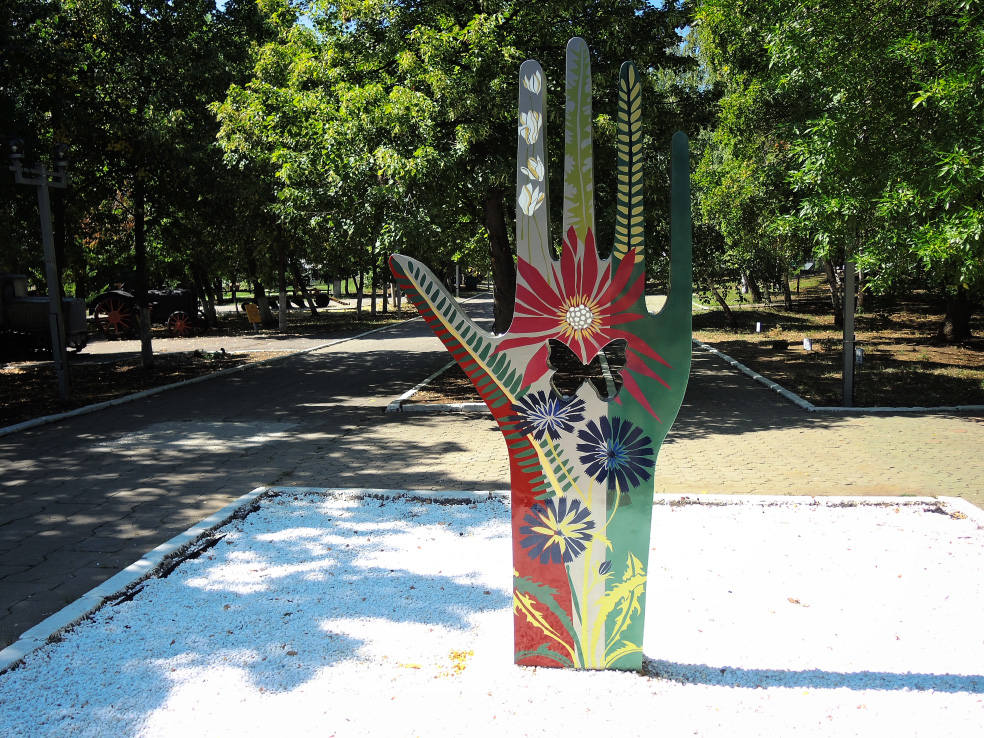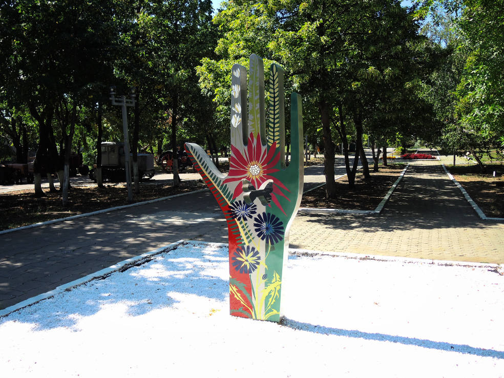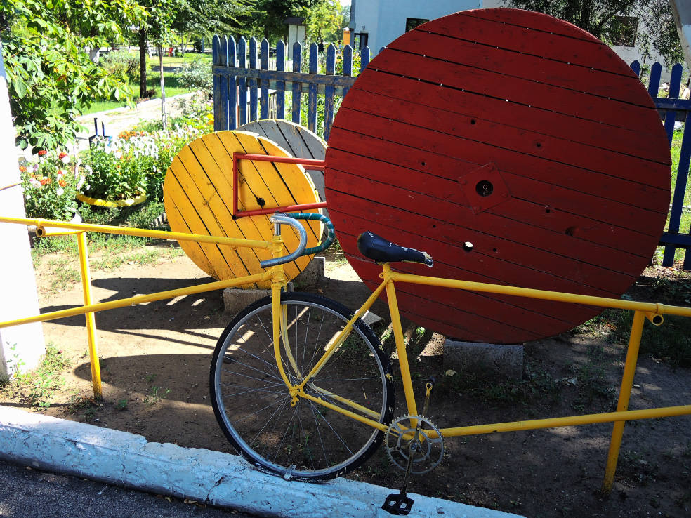 На аллее около площадки с сельскохозяйственной техникой установлен арт-объект.