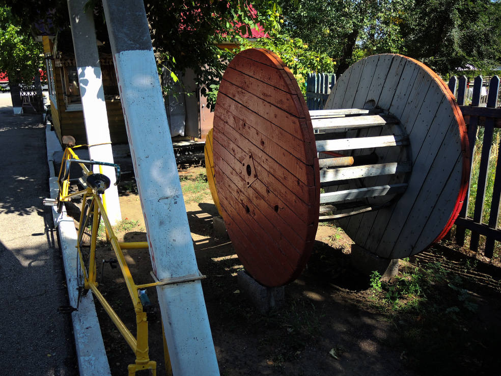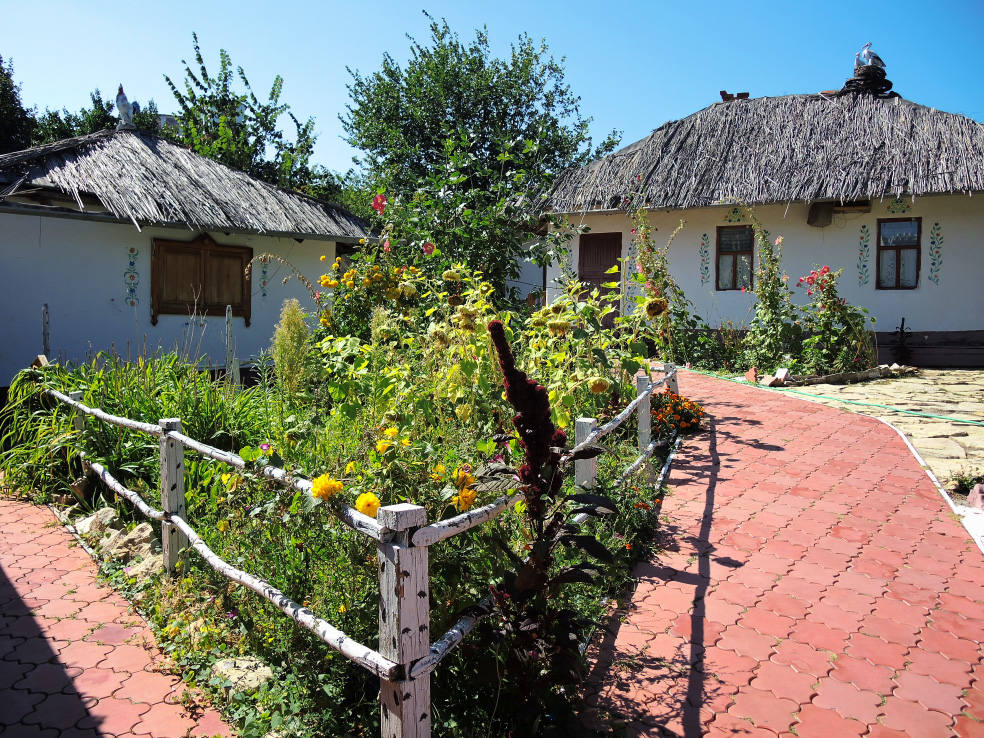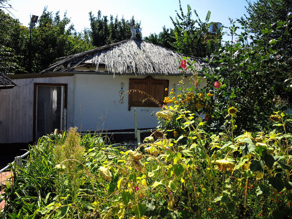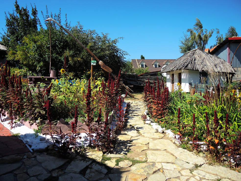Мы дошли до этнографического комплекса "Национальная деревня народов Саратовской области". Комплекс был открыт в 2003 году. Планировался как музей под открытым небом, в котором можно увидеть типичные строения народов, которые проживают на территории Саратовской области, попробовать национальную кухню, познакомиться с бытом. Идея, конечно, интересная. Но на деле всё разбилось о финансовую сторону. И проект остался недоделанным. И работа подворий очень нерегулярная из-за неудачного расположения. Со временем деревня выглядит всё хуже и хуже. Во время нашей поездки работали всего два подворья - русское и украинское. И то в формате кафе (или ресторана, не знаю, как они себя позиционируют). Остальные - либо закрыты, либо заброшены, либо не достроены.