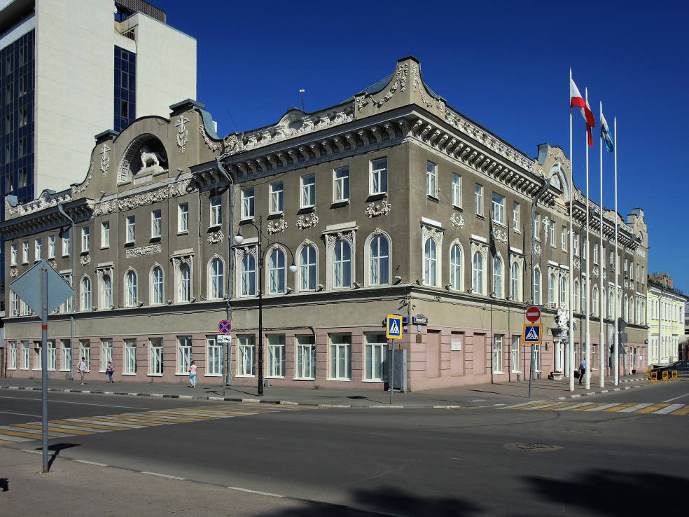 На углу улиц Радищева и Первомайской находится здание, в котором сейчас размещается городская администрация. Здание было построено в 1867 г. купцом И. Г. Кузнецовым в качестве доходного дома. (Есть риск пошутить, что в таком же качестве оно используется и сейчас. Но для этого нужно обладать прямыми доказательствами, которых я не имею. Поэтому так скользко шутить я не стану.)