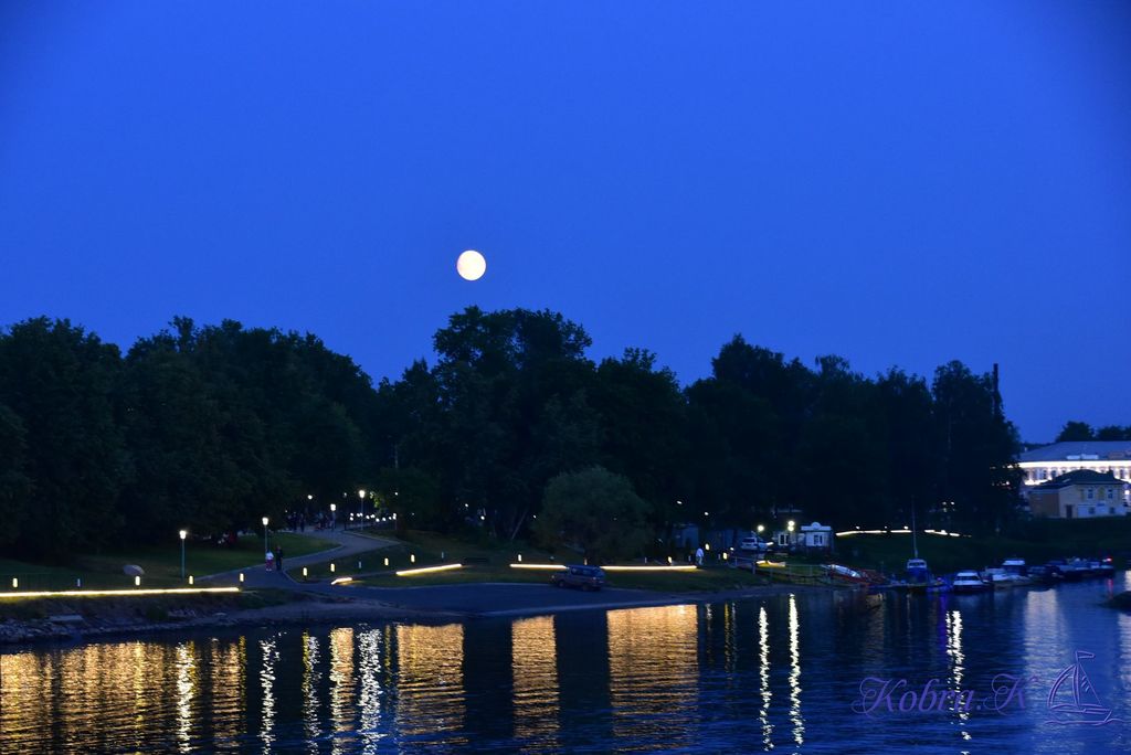 В этот день было полнолуние. Какой-то очередной момент природного возмущения. Но нас это не беспокоит. Мы отдыхаем. Новая набережная в красивой подсветке - замечательно выглядит.