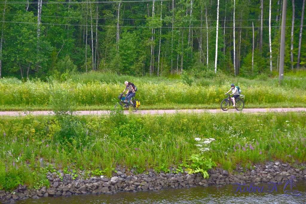 Нам активно машут велосипедисты, проезжающие по Вело 1. Первая национальная велотрасса, пока от Яхромы до Дубны. Но обещают дотянуть аж до Питера, ну и до Москвы тоже.