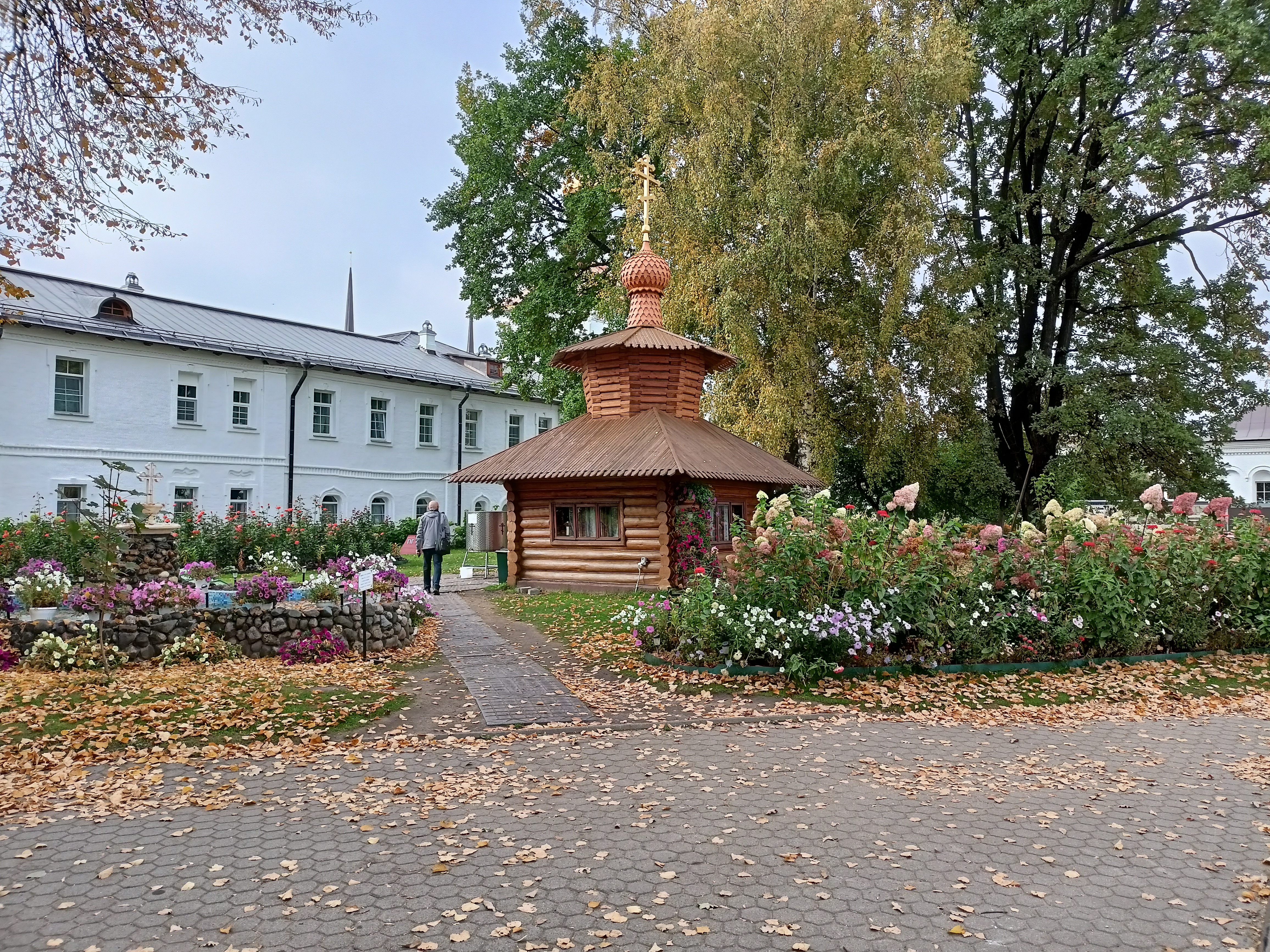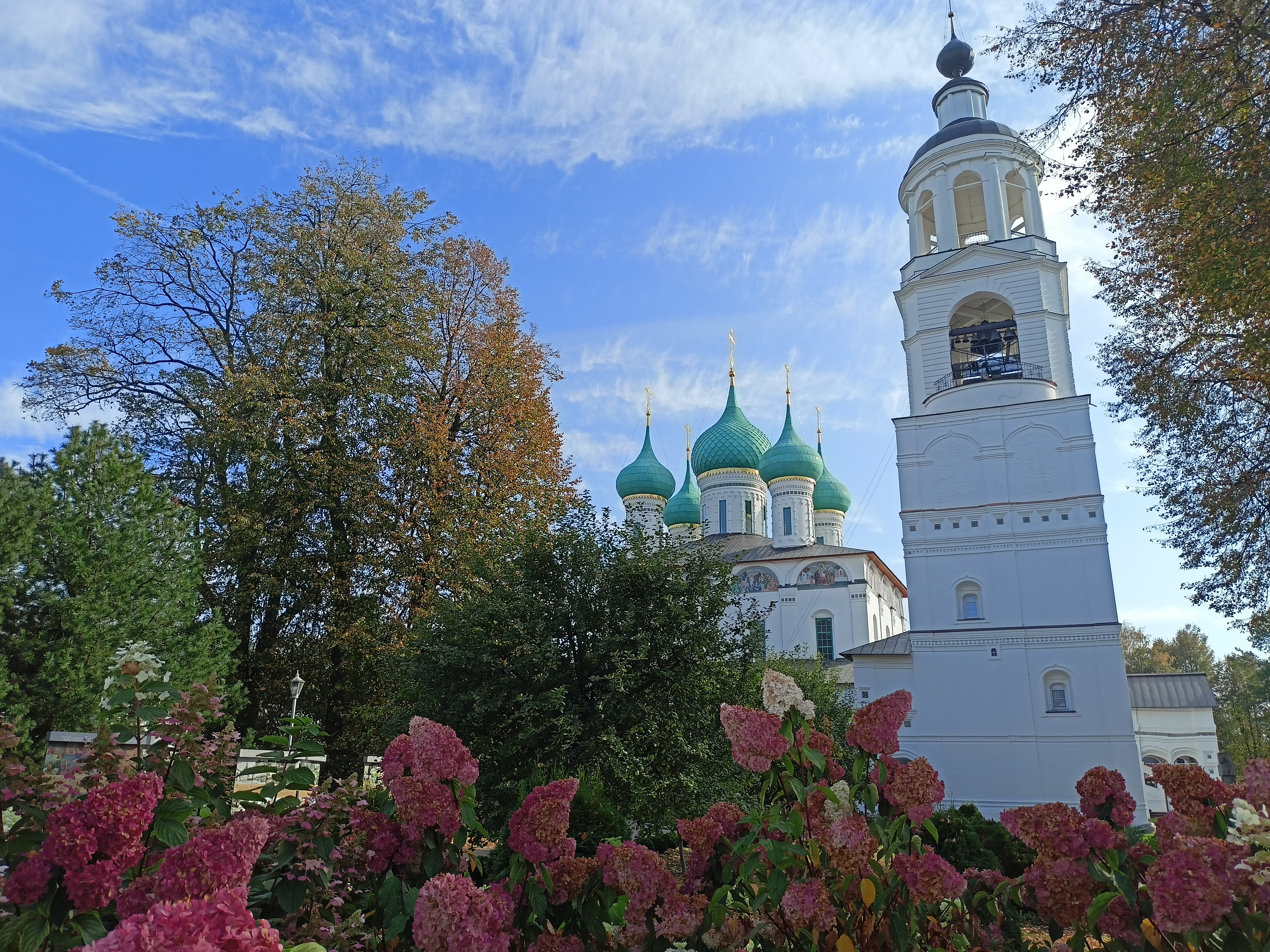 Круизная программа началась у меня сегодня с посещения Толгского монастыря. В такую теплую осеннюю погоду монастырь красив безумно. Ещё цветут тысячи заботливо посаженных цветов, благоухают розы и все это на фоне жёлтого ковра.