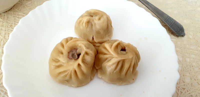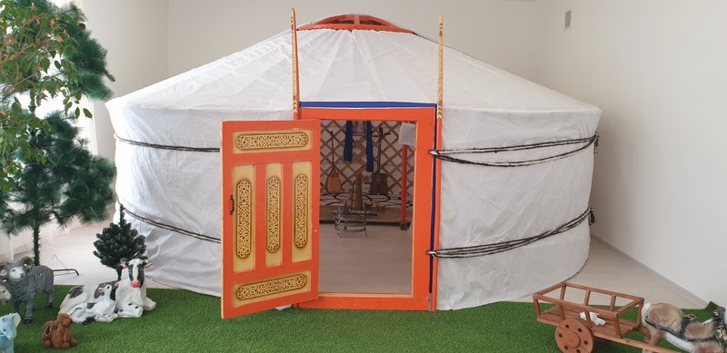 Дегустировали тоже, что и в Элисте, только без супчика. Я быстро съела свою порцию и побежала в Музейчик , который состоял всего из двух комнат. В одной была юрта, а в другой личные предметы калмыков. Тут же можно было и сфотографироваться в одежде и головных уборах нкалмыков.