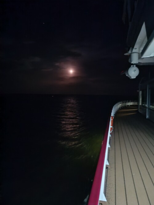 Вообще дни в этом круизе идут, как под копирку. В 6 часов начинает светать и в 6:30 уже совсем светло. И опять же примерно в 6 часов начинает темнеть. И в 6:30 уже совсем темно.