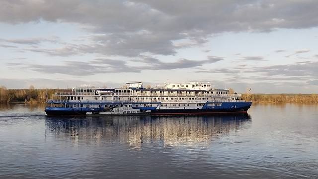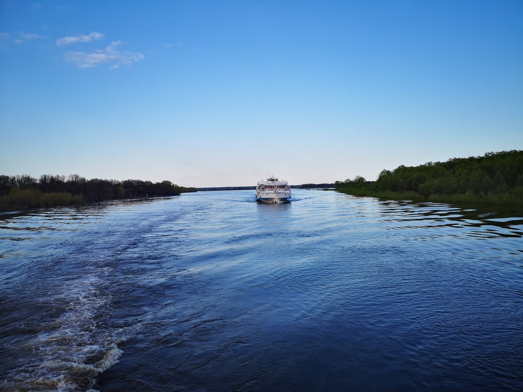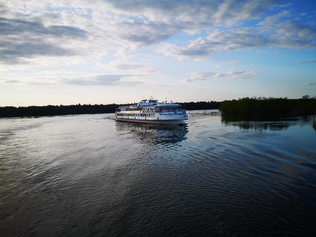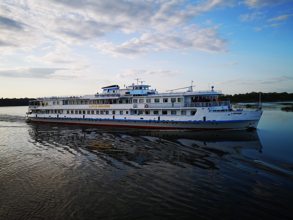 Лебединое озеро. Отправились по расписанию. Немного, правда, походили с чемоданами от трапа до пропускного пункта и обратно, т.к. досмотр всё же проводили у трапа. На теплоходе всё хорошо. Бар работает, ассортимент обещали весь. Детское меню тоже обещано. Идет знакомство с командой.
