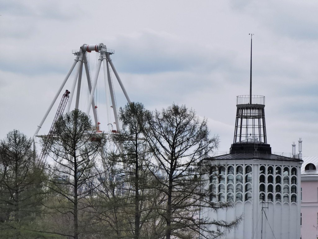 Откровенно говоря не нашёл соответствующей темы, потому здесь. Дамы и господа, вы давно были на ВДНХ? Там сейчас сооружают объект колоссальных размеров. За бывшим павильоном семена (сейчас №7 союзмультпарк) и бывшим магазином хлеб, идёт сооружение колеса обозрения высотой 136 метров. Сейчас построено его основание похожее на пирамиду, т.е. конструкция высотой примерно вполовину от той, что будет. Но даже она уже весьма внушает. Чтобы понять размеры, предыдущее колесо обозрения "Москва 850 лет", которое располагалось справа от центрального входа и было далеко не маленьким, имело высоту 73 метра. Для сравнения - колесо обозрения в Ярославле "Золотое Кольцо" имеет высоту 65 метров, а большое колесо в измайловском парке 50 метров. Так что новый аттракцион на ВДНХ будет поистине исполинских размеров. Сейчас то что уже построено выглядит вот так.