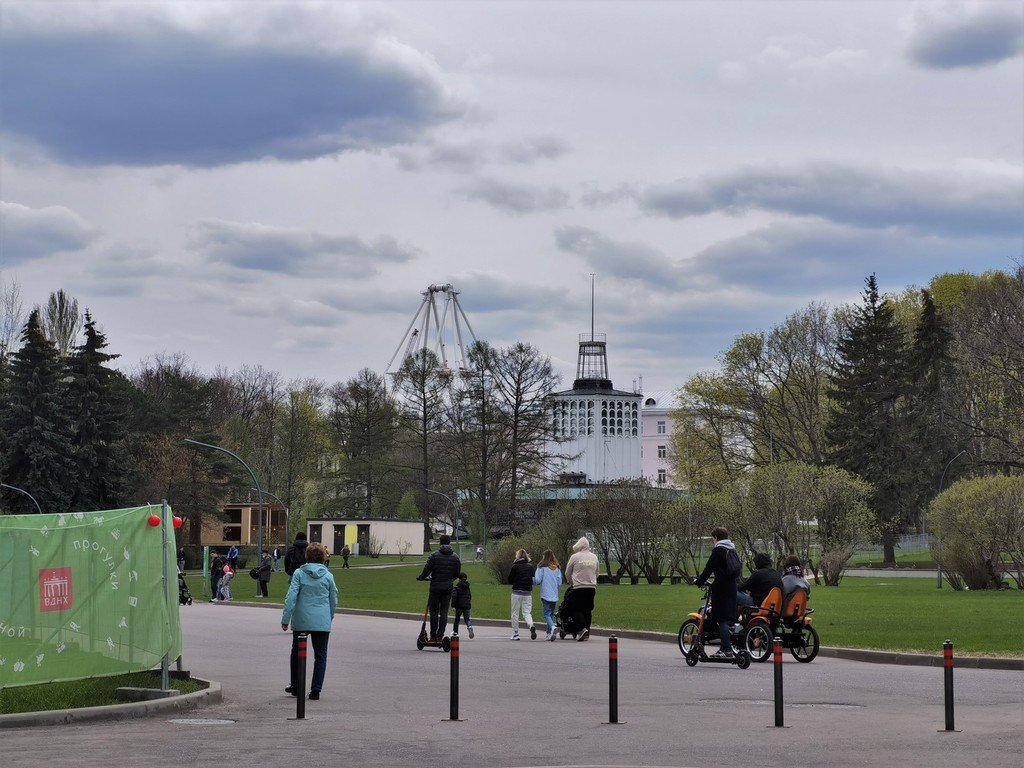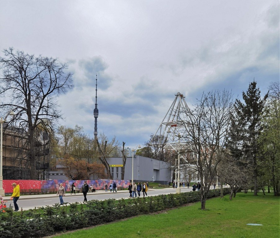 Вид от Москвариума. Белое здание со шпилем - бывший павильон метеорология, ныне №16 музей кукол