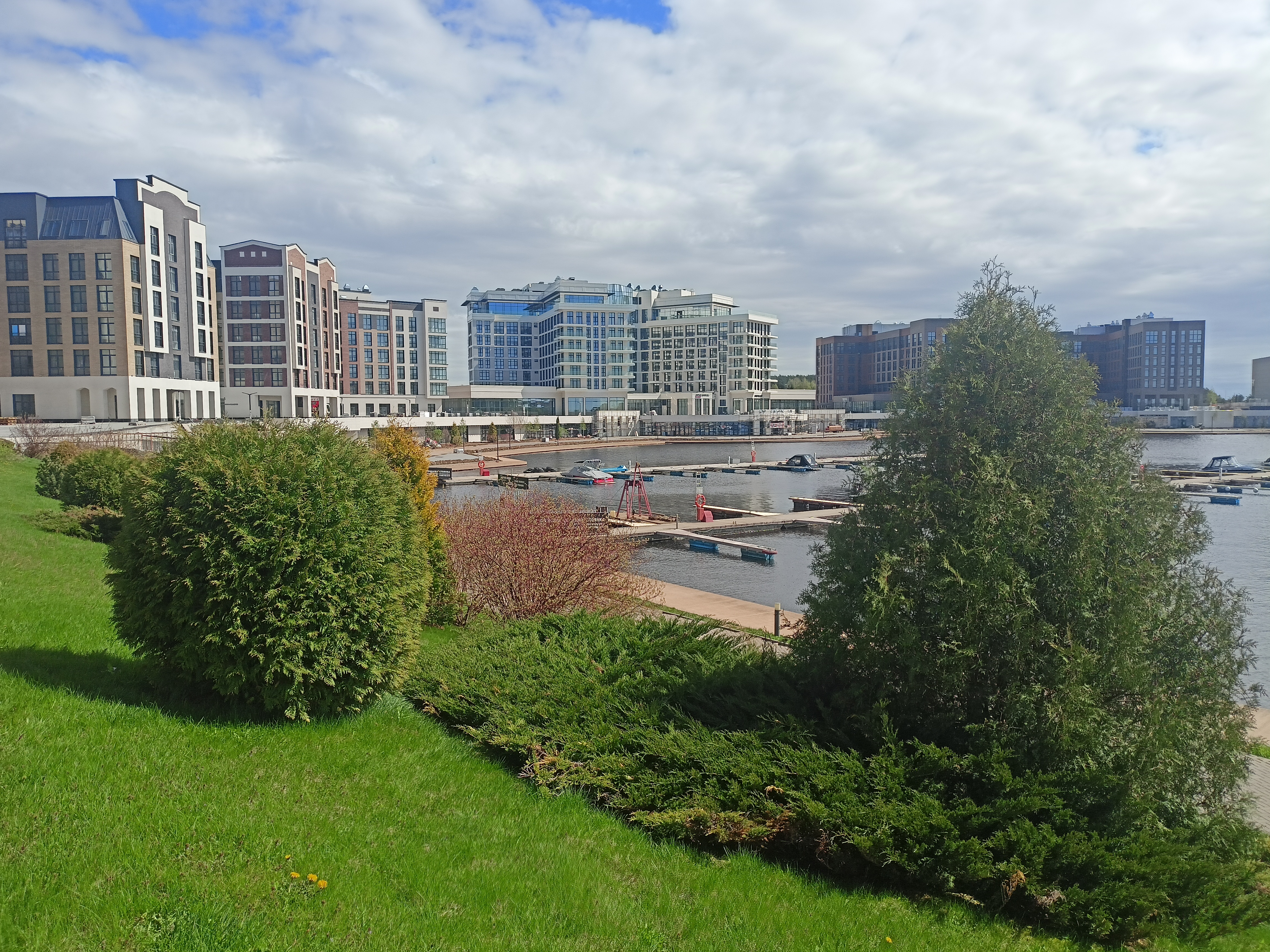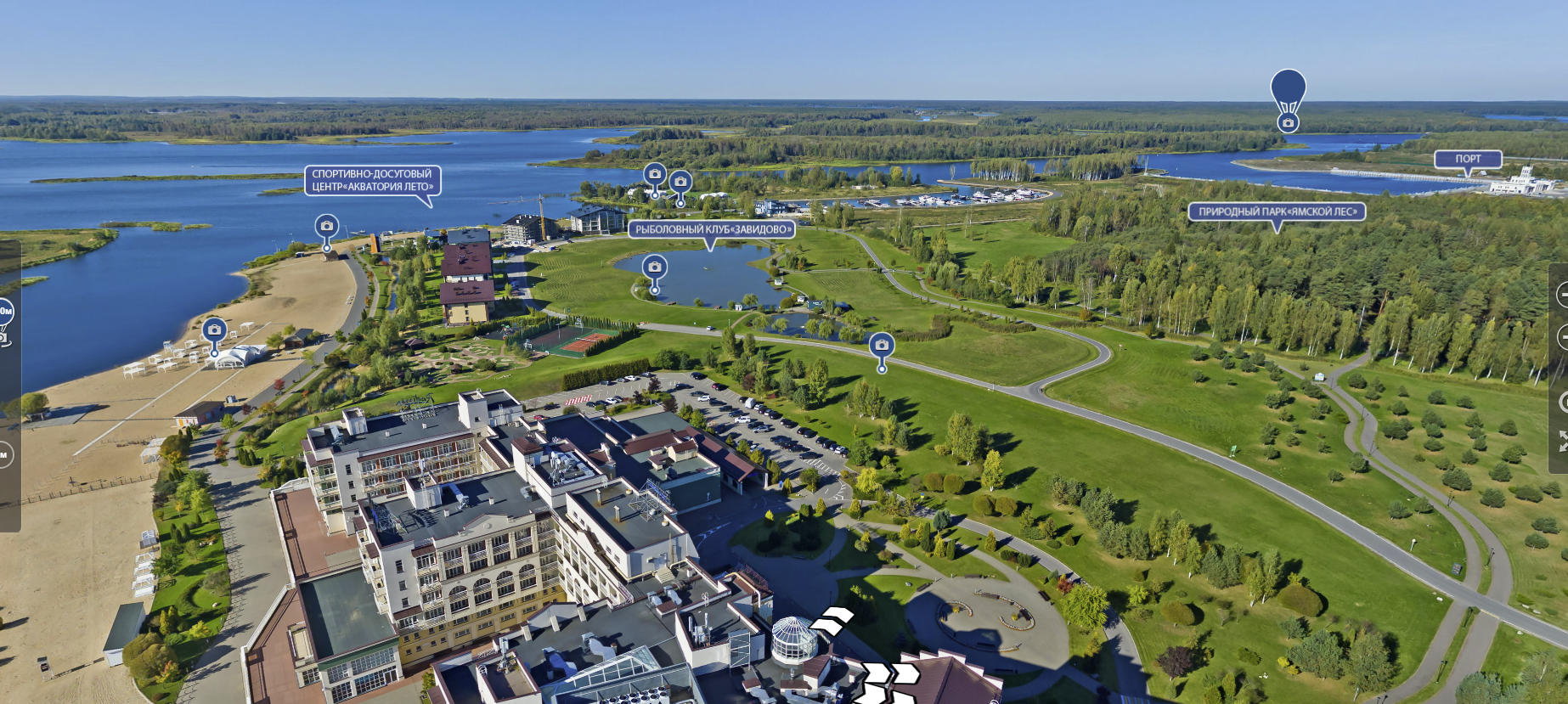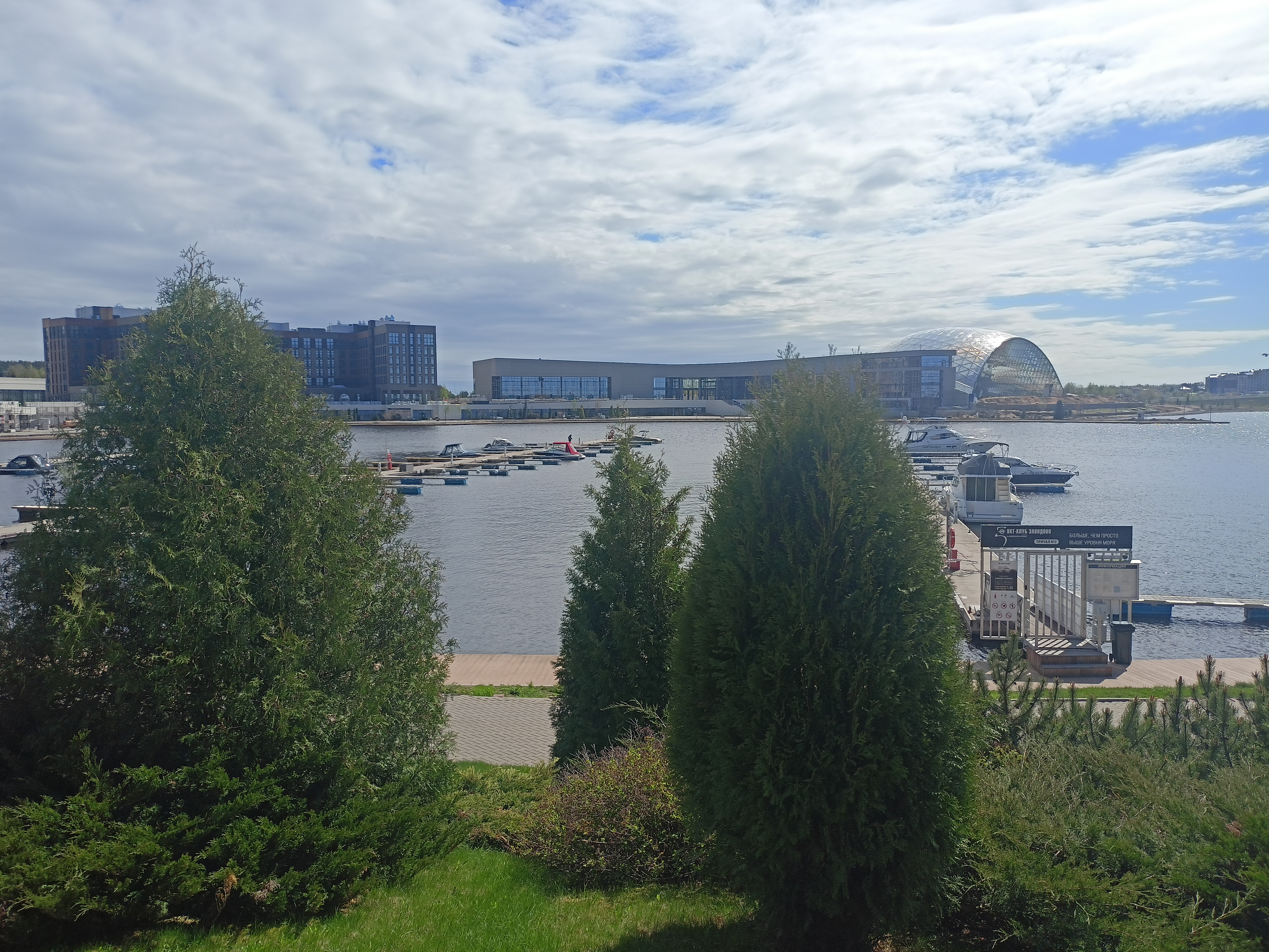 Далее по Шоше заход в главную марину курорта Завидово, с яхтами и отелями.